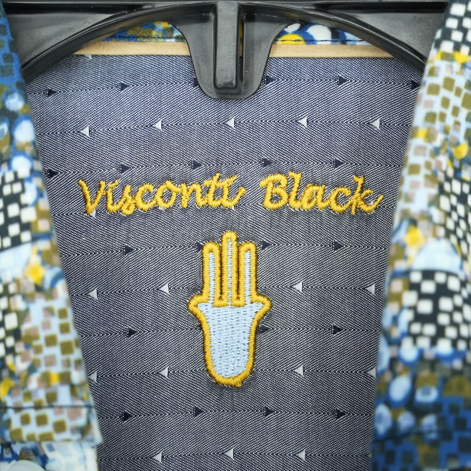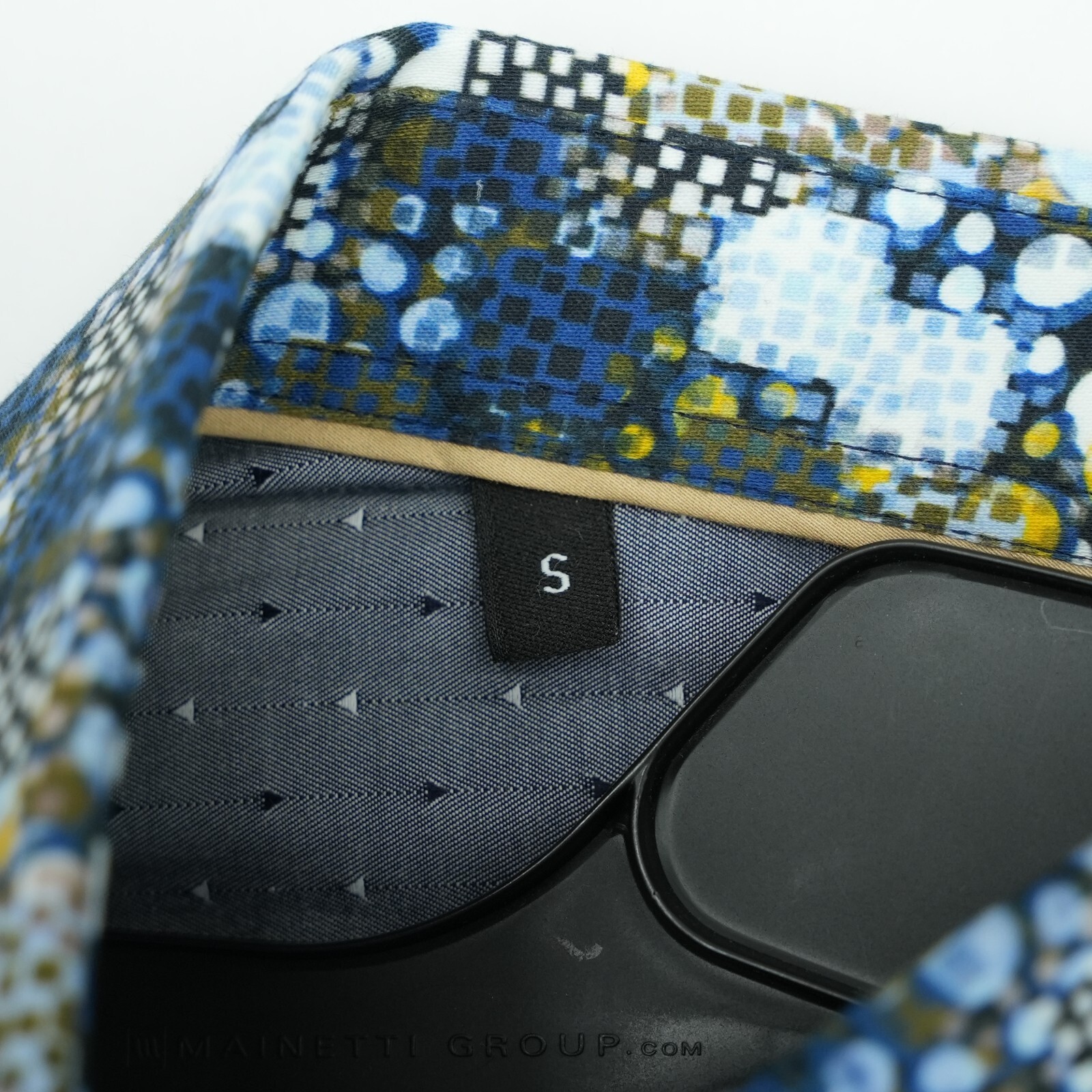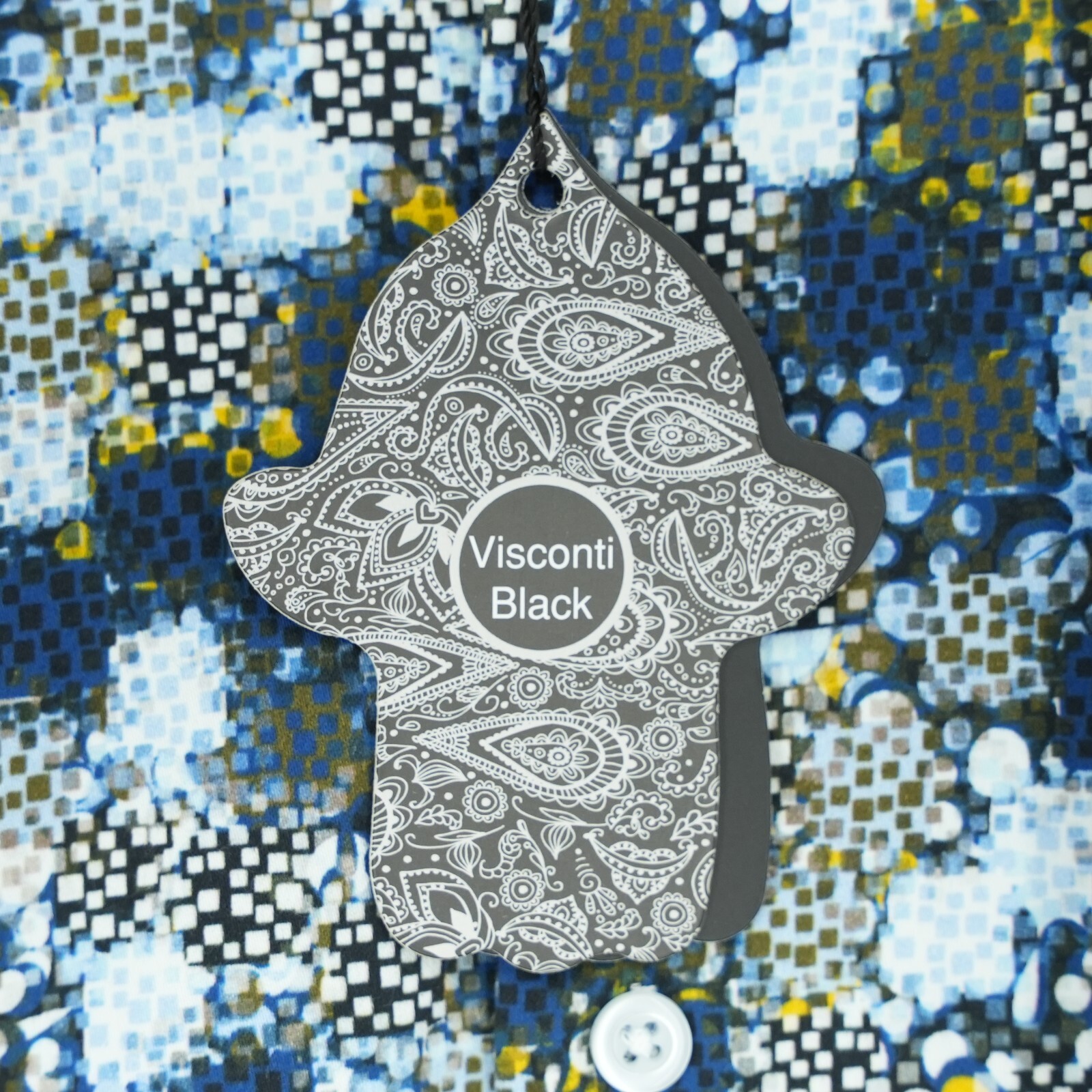 Visconti Black Men's Long Sleeve Shirt S Blue White Yellow Geo Stretch NWT 125