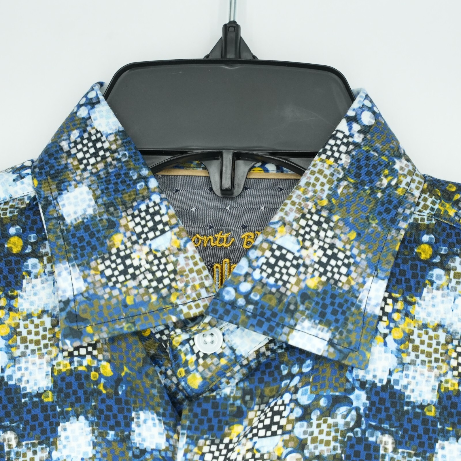 как выглядит Visconti Black Mens Long Sleeve Shirt S Blue White Yellow Geo Stretch NWT 125 фото