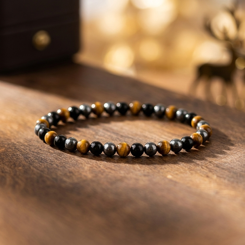 Triple Protection Bracelet 4mm Black Obsidian Tiger Eye Hematite Healing Jewelry