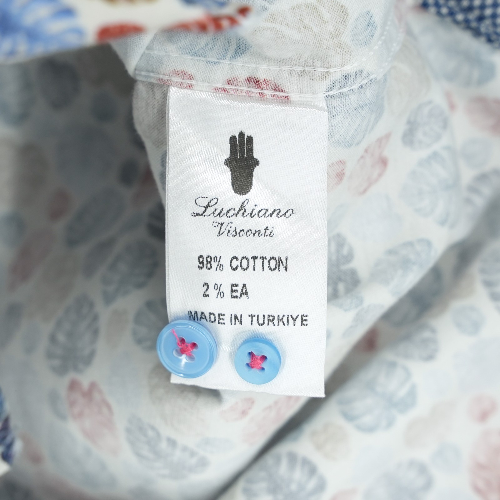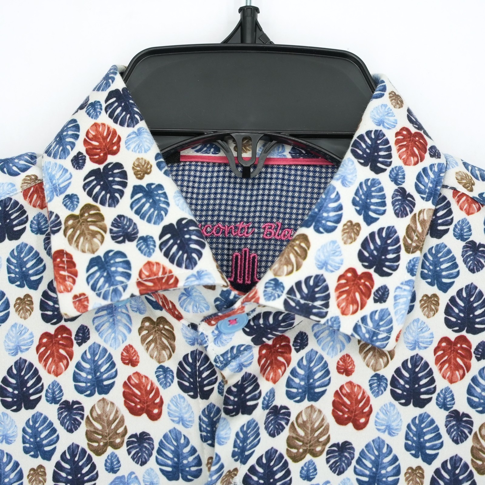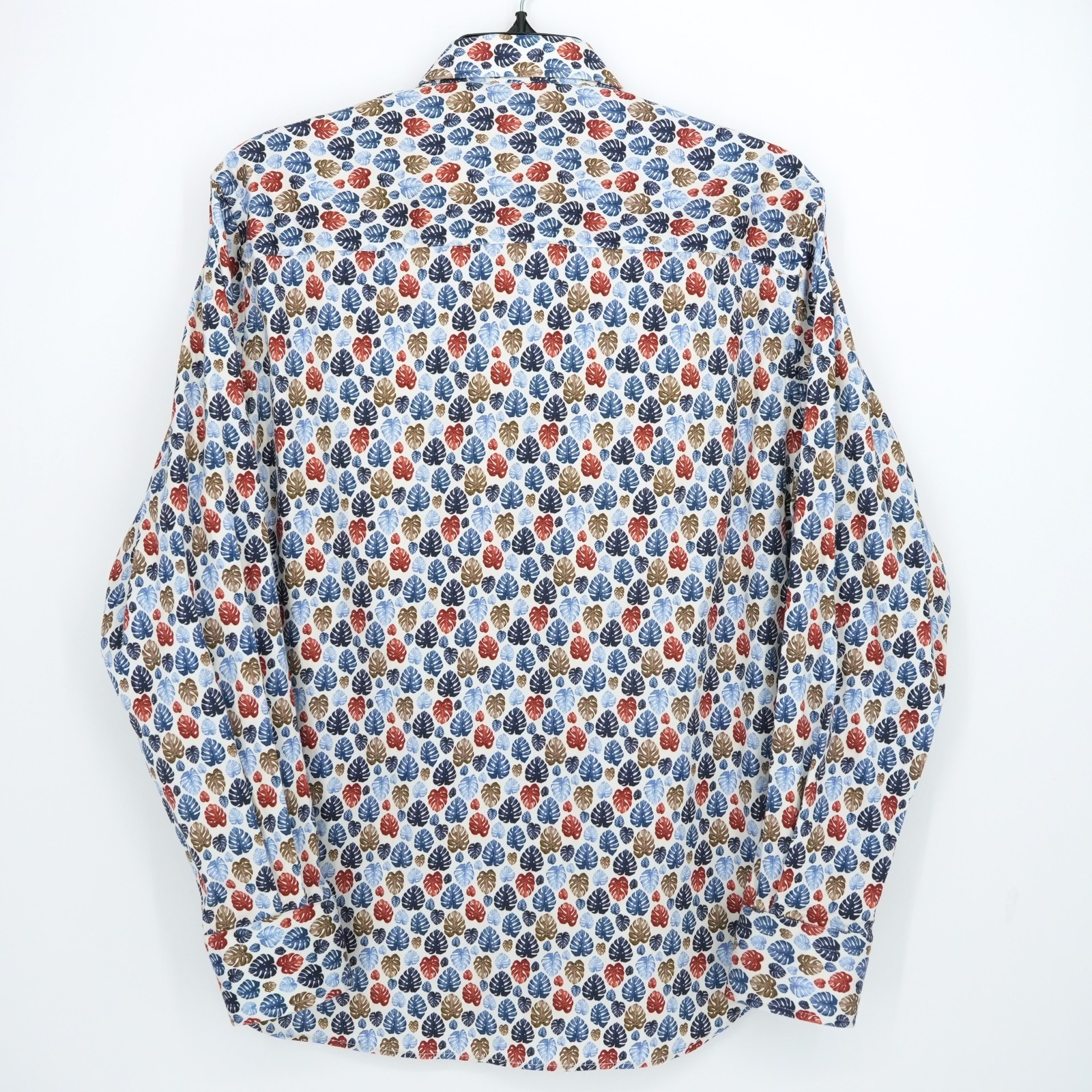 Visconti Black Men's Long Sleeve Shirt S White Blue Red Brown Palm Leaf NWOT