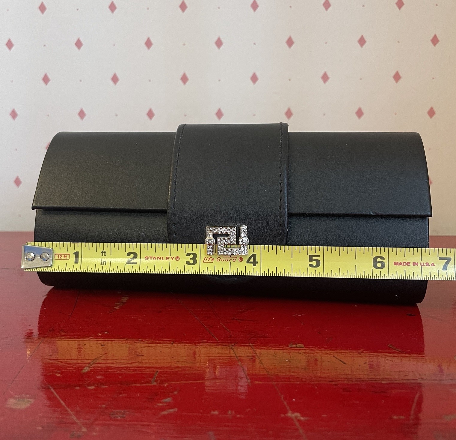 как выглядит Versace Eyeglass Sunglass CASE Black with Crystal Greca Logo Hard Shell Vintage фото