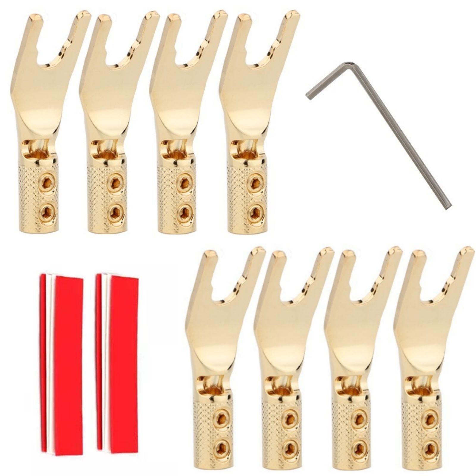 8x Gold Plated Y Spade Plug Speaker Cable Connector HIFI Audio Amplifier Fork