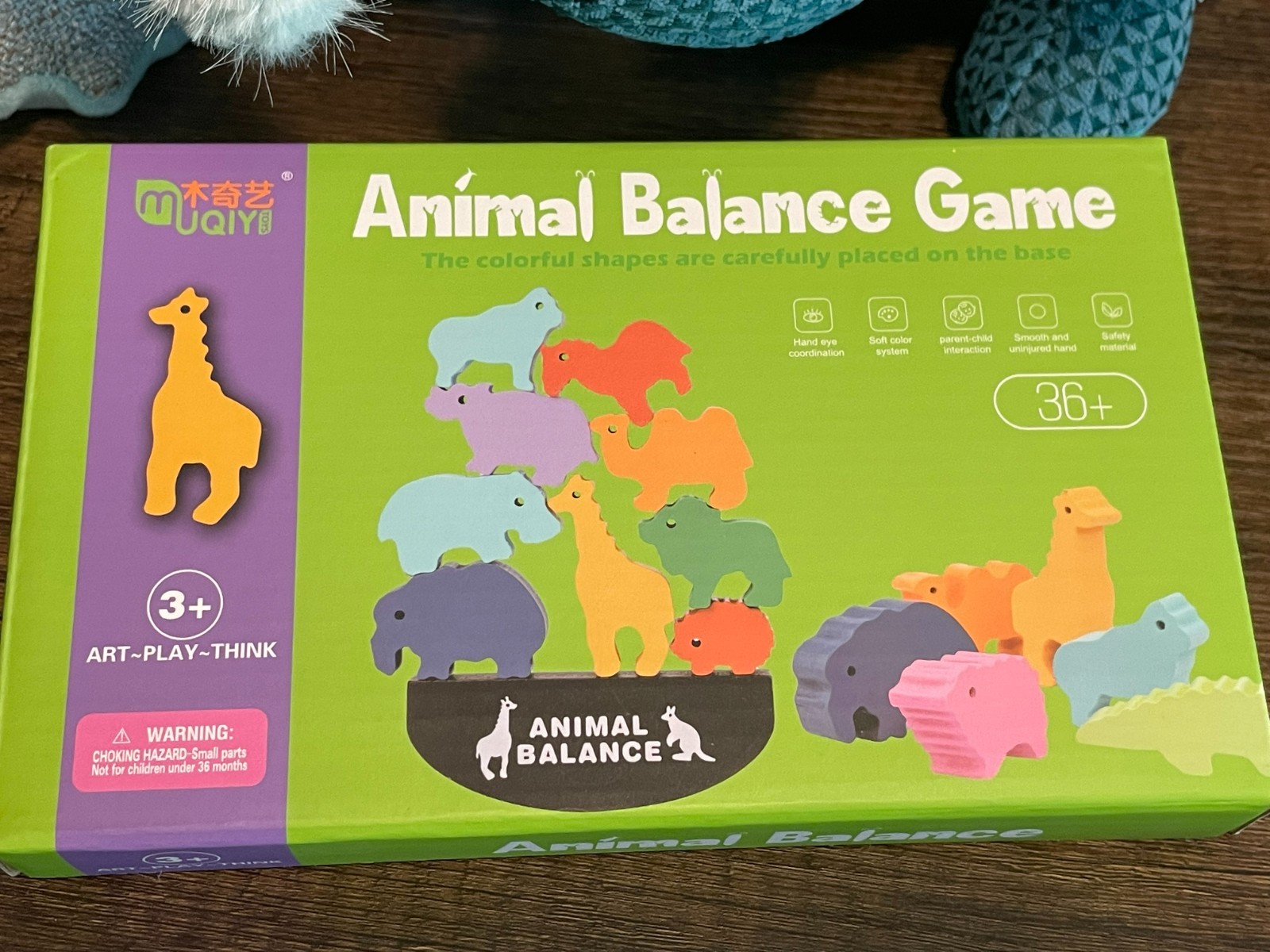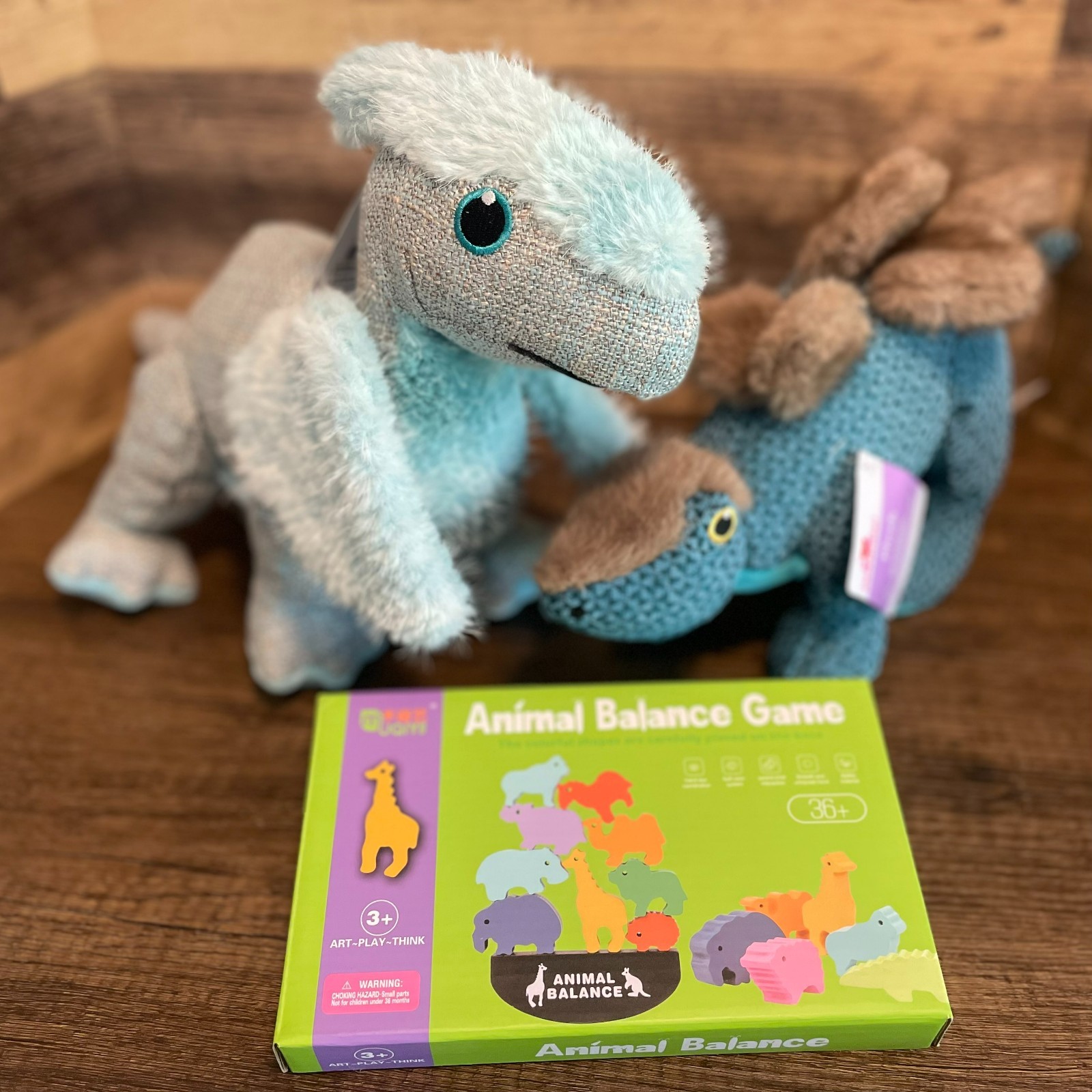 Dinosaur Wooden Learning Development Balance Puzzle with Two Plush Dinosaurs