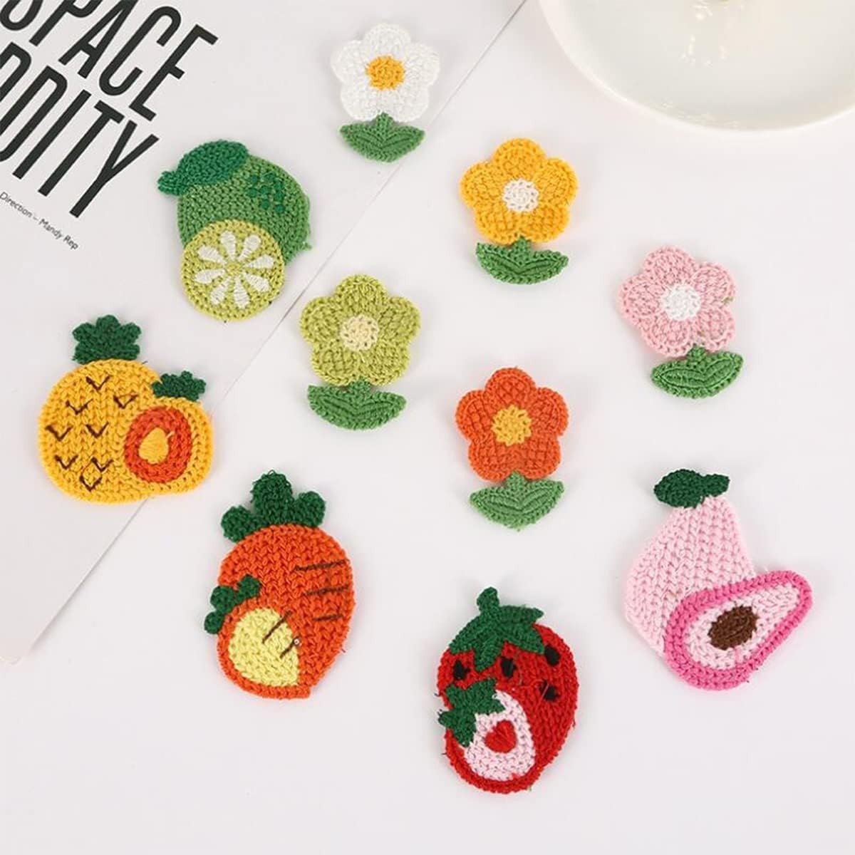 как выглядит 50Pcs Crochet Flower Applique,Crochet Sewing Embellishment Flower Sew On Patc... фото