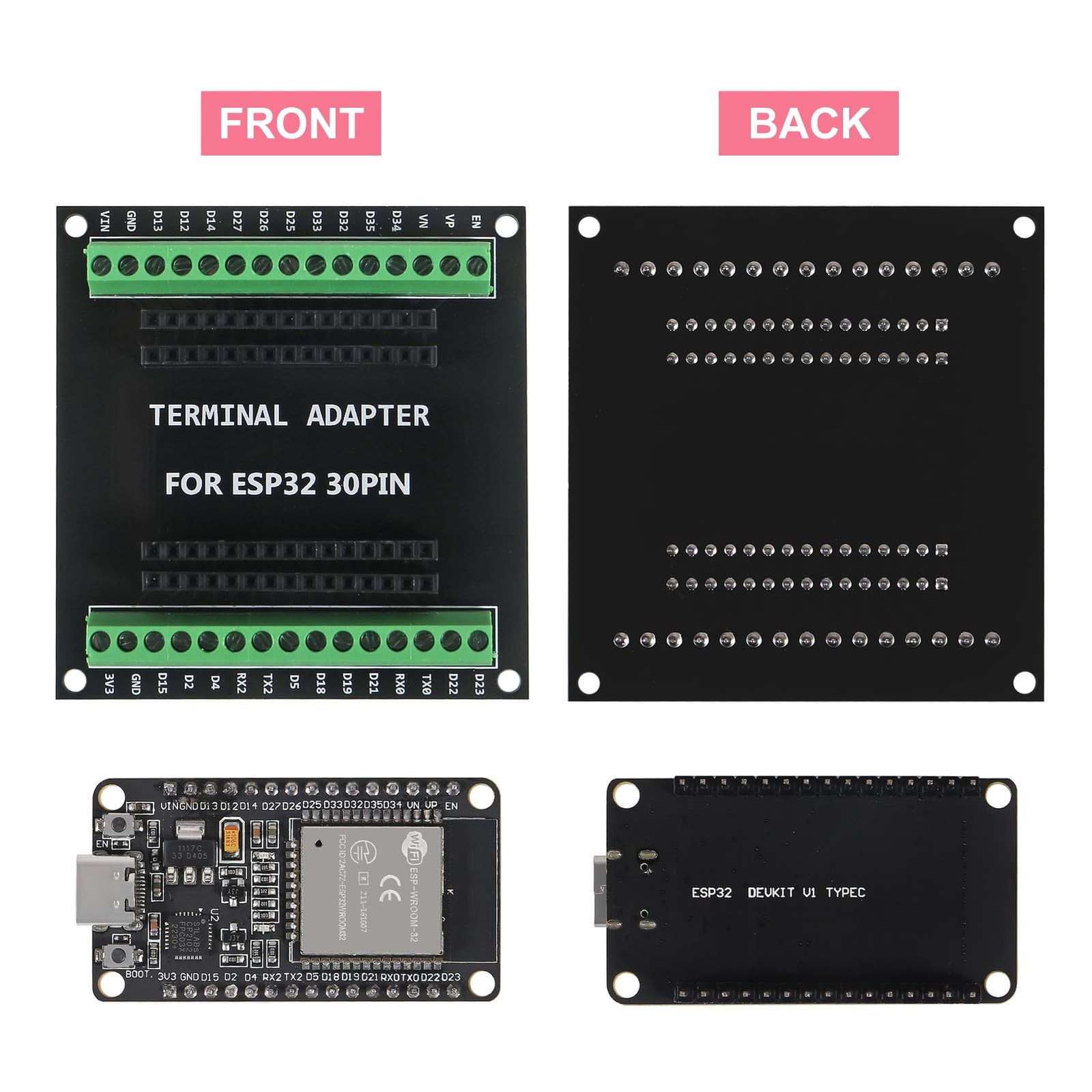 2 PCS ESP32 Development Board 30Pin TypeC CP2102 WiFi Bluetooth Dual Core Hub
