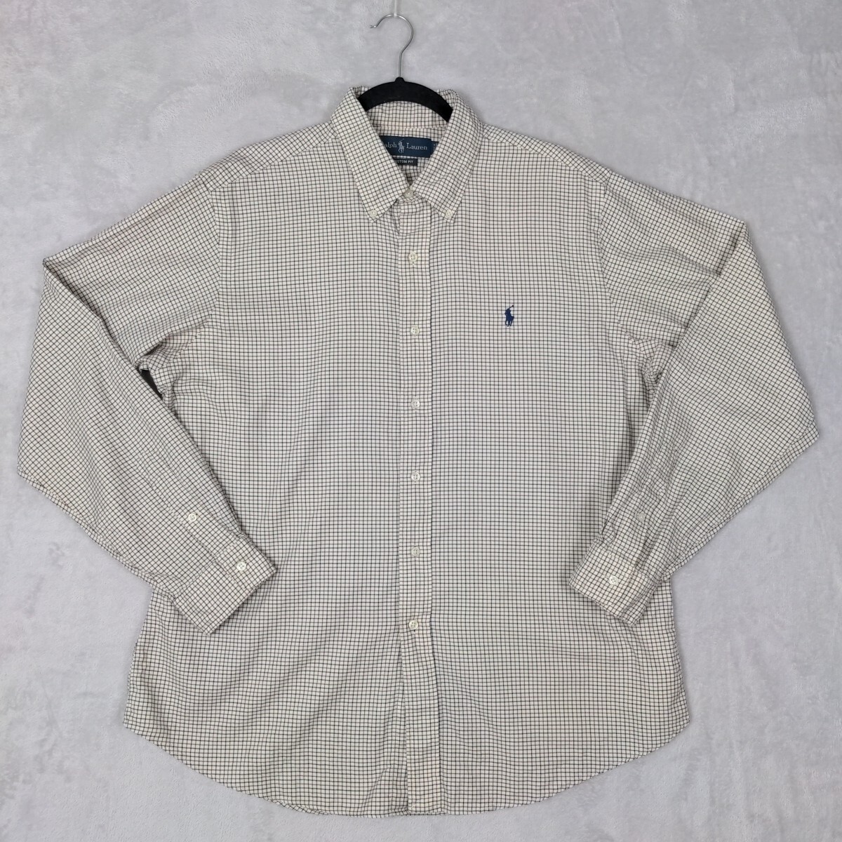 Ralph Lauren Custom Fit Button Up Shirt Men XL Blue Brown Plaid Cotton Preppy