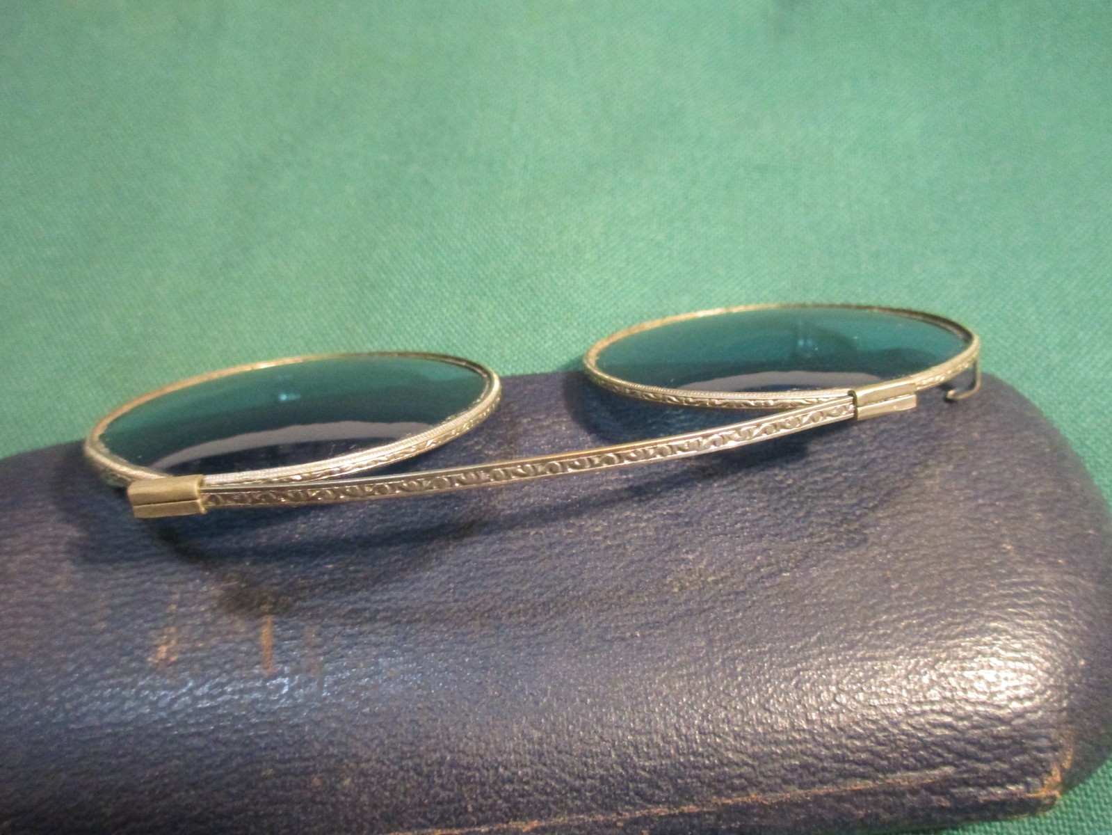 как выглядит ANTIQUE 1910-20 ERA CLIP ON BLUE GLASS SUN GLASSES фото