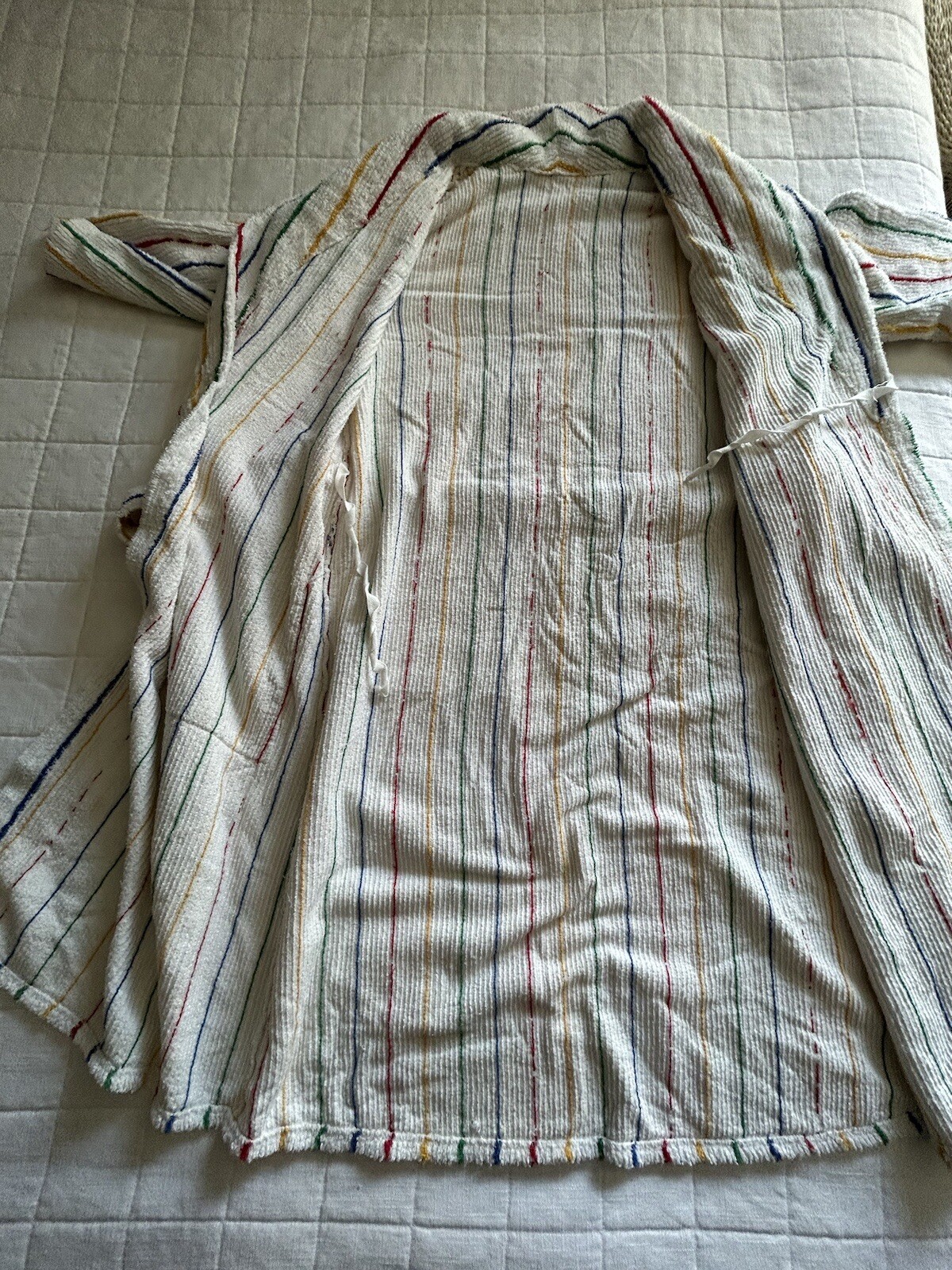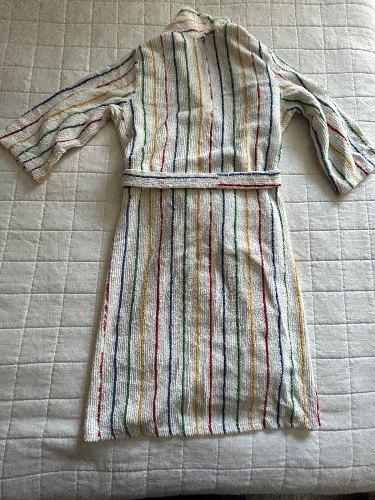 Vintage 1950s Child's Chenille Bath Robe White with Stripes Kids 10-12 Lg FUN