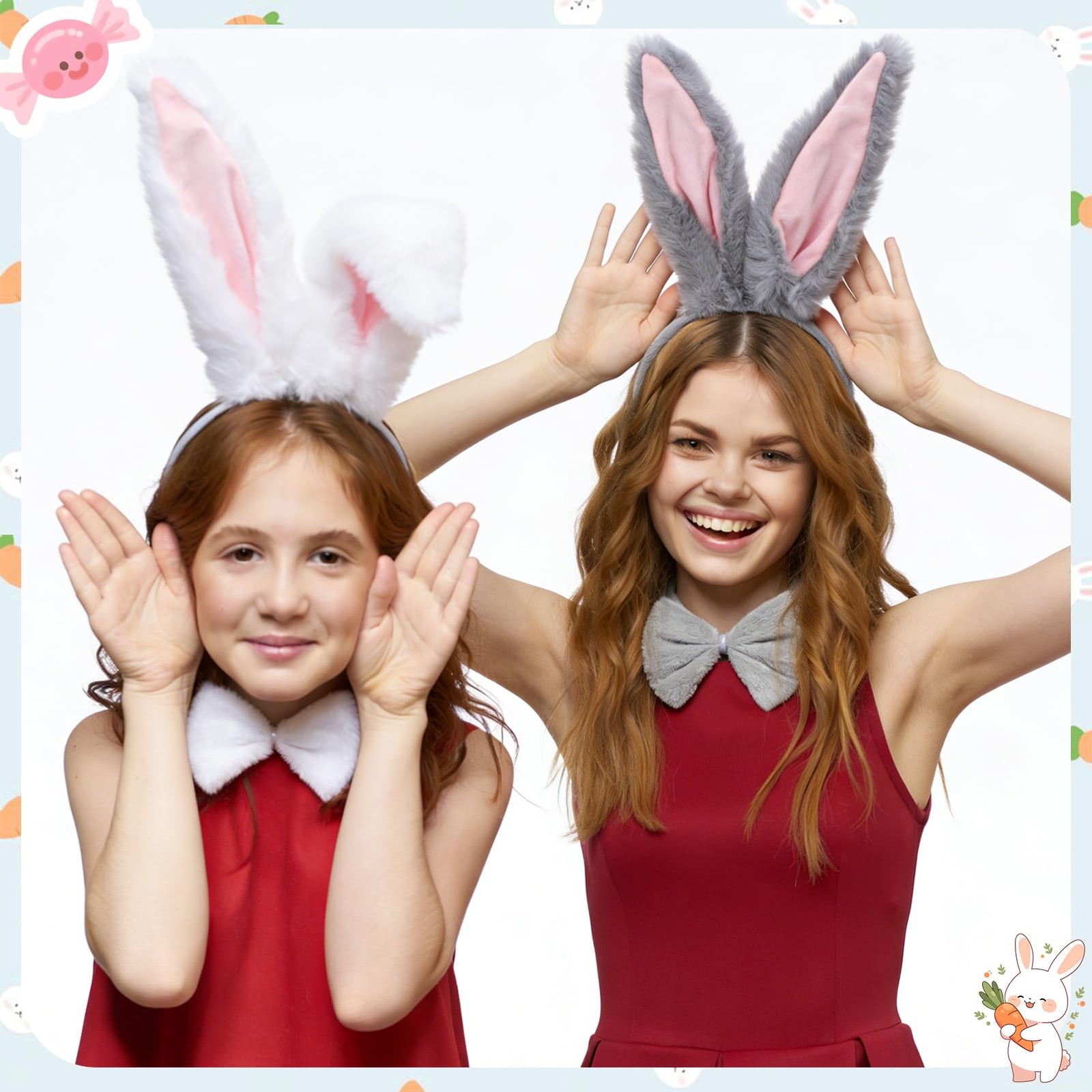 2 Set Easter Bunny Costume Adult Bunny Ears Headband Set Including Bow Tie Ta...