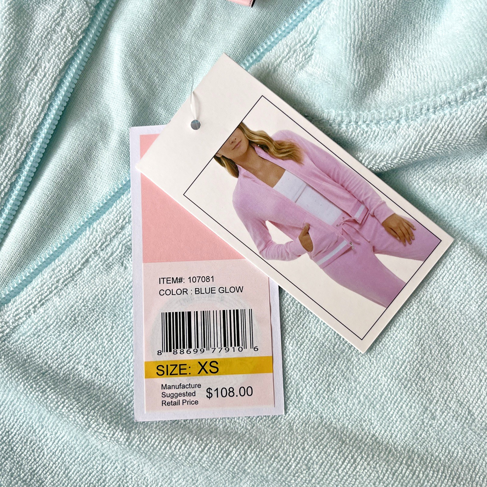 как выглядит Juicy Couture Velour Tracksuit Jacket Light Blue Glow Womens Sz XSmall New фото