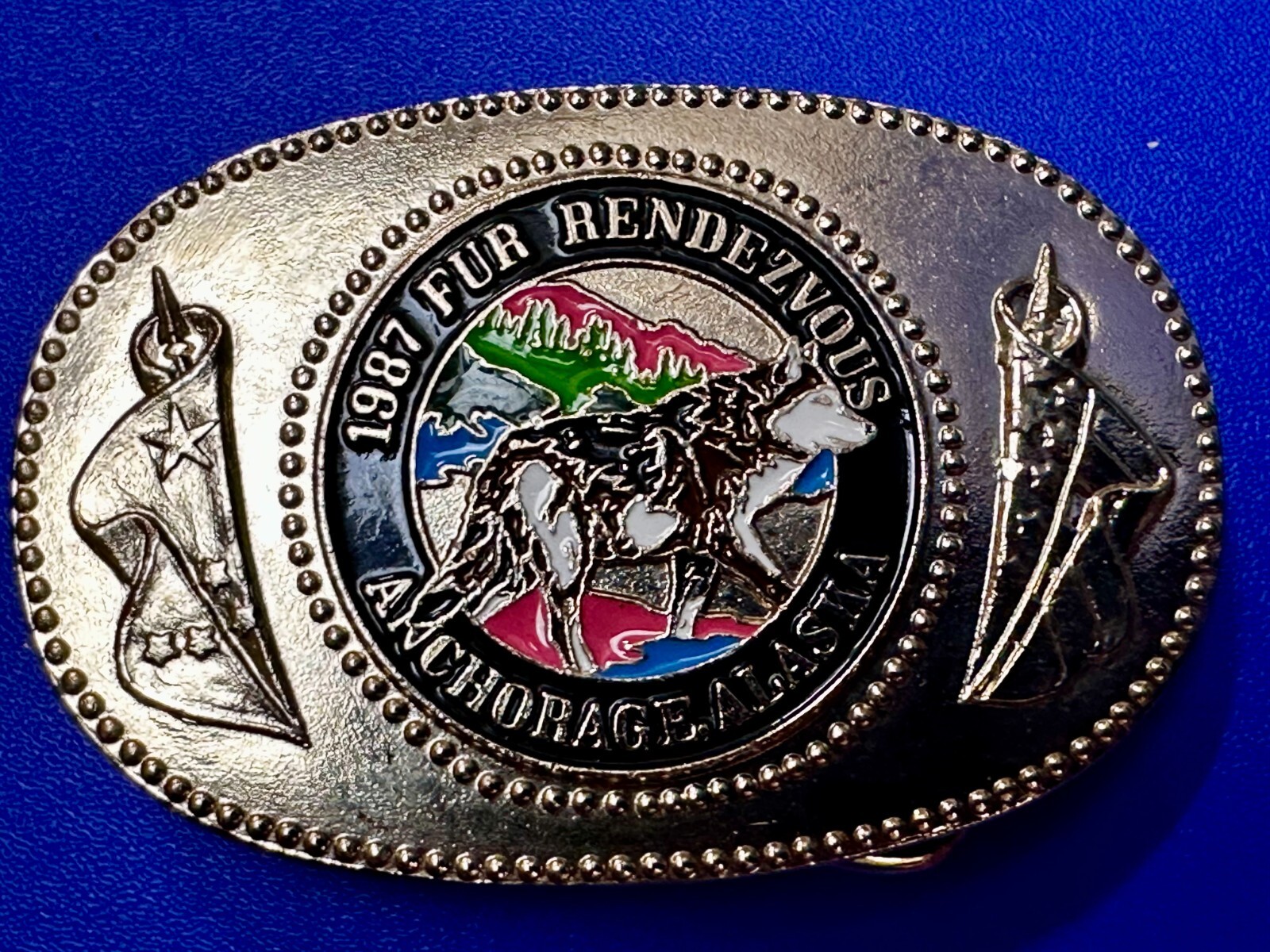 как выглядит Fur Rendezvous Great Wold - Anchorage Alaska Small Gold Tone Belt Buckle фото