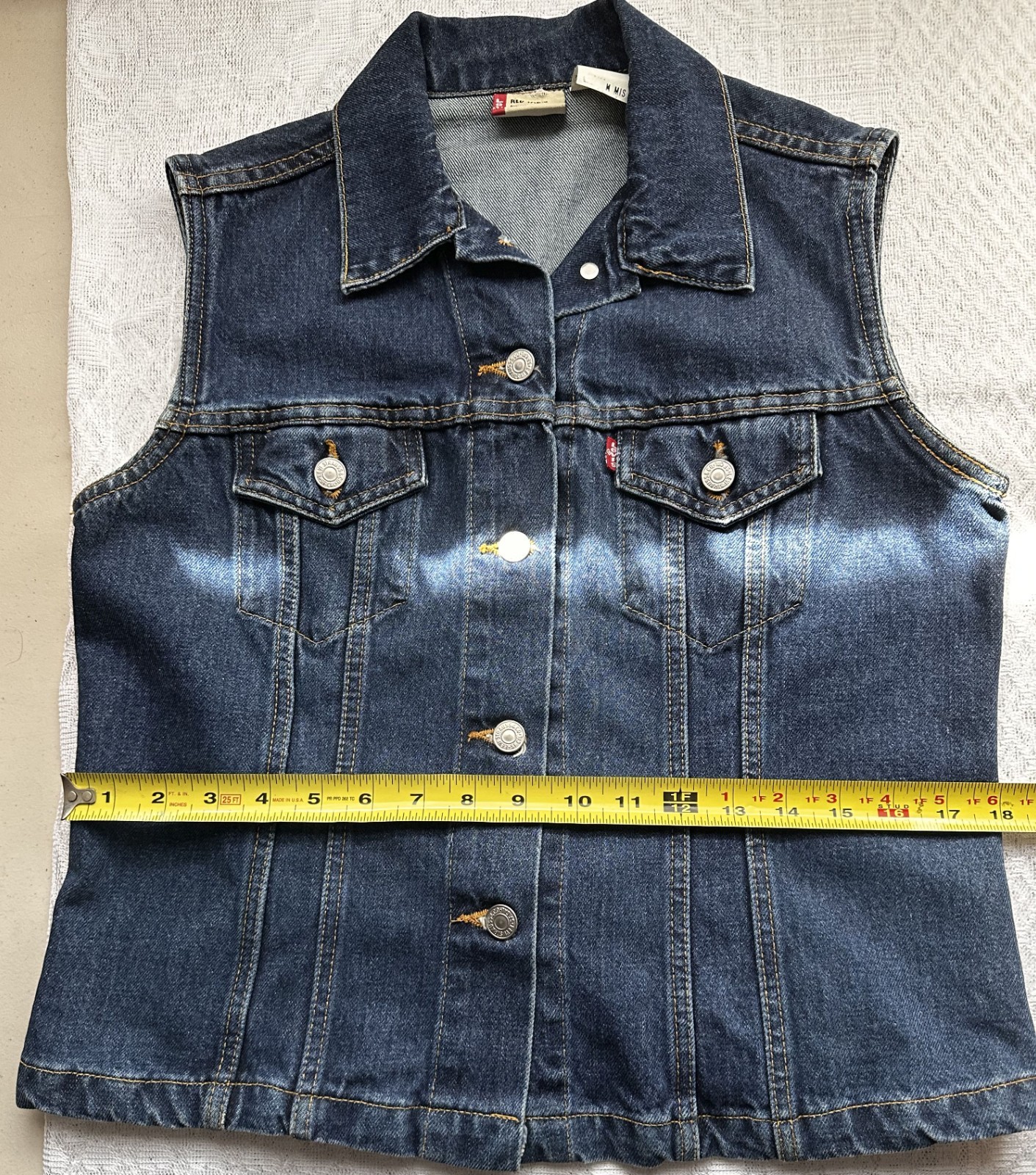 Levis Red Tab Denim Jean Trucker Vest Womens Size M Cinch Back USA ca. 2000