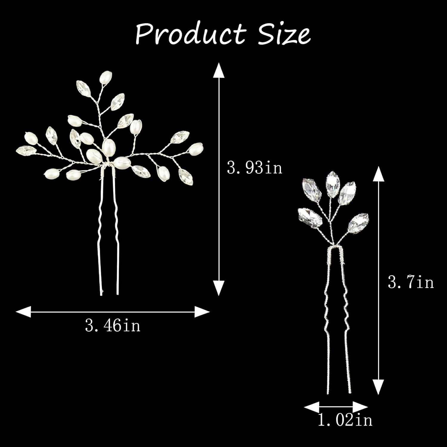 5 Pcs Rhinestone Bridal Hair Pins Sparkly Bride Hair Piece for Women Crystal Pea