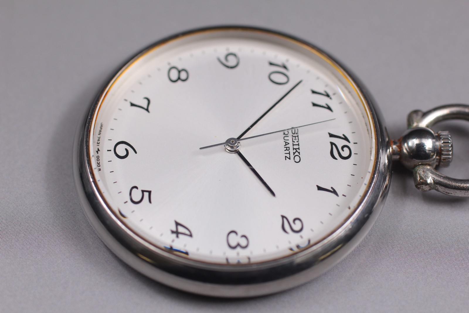 N MINT VIntage SEIKO Pocket Watch 7431-0020 Silver Dial Open Face From JAPAN