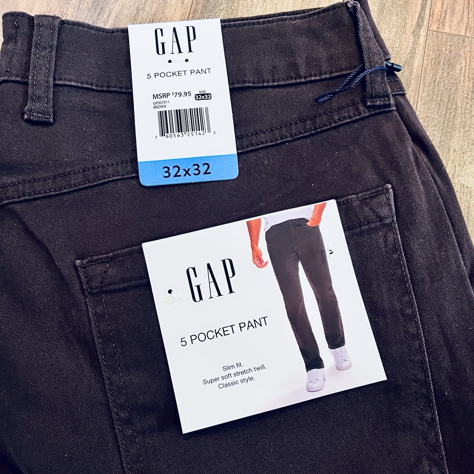 Gap Men's Slim Fit 5-Pocket Twill Pant Size 32 x 32 Brown GP007911 - SHIPS FREE