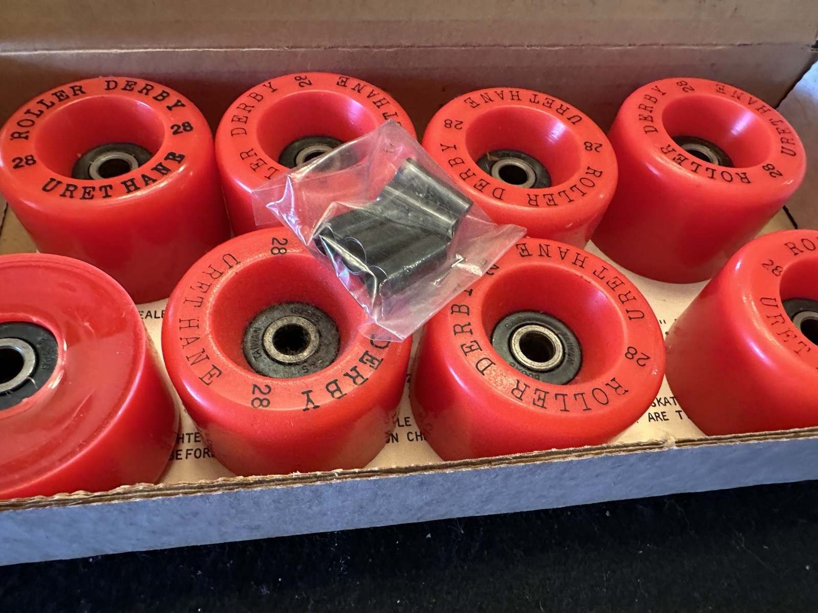 Vintage NOS Roller Derby Skate Wheels - Set of Eight with Extras Instructions