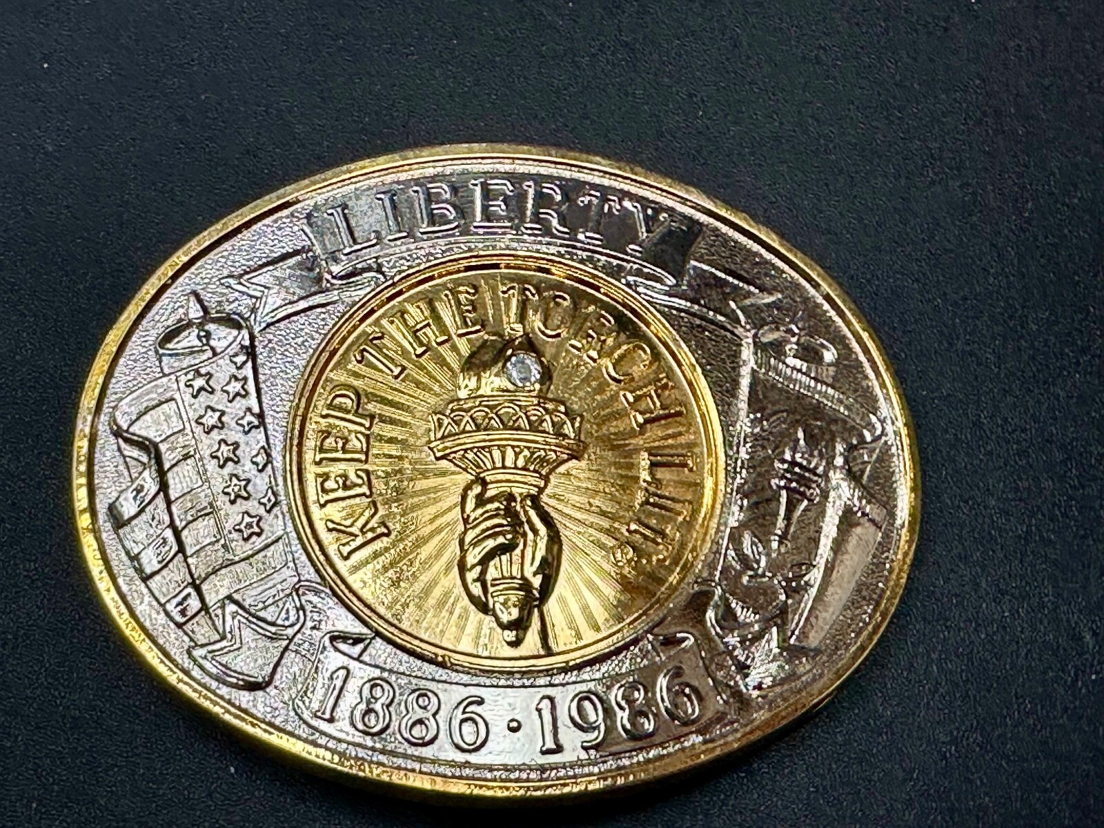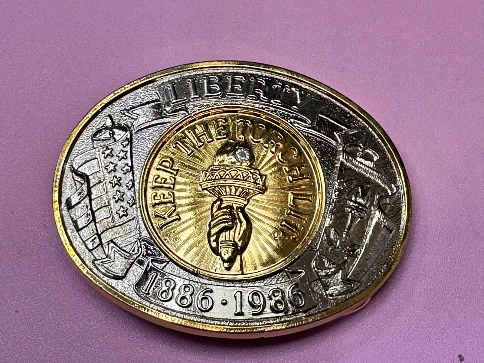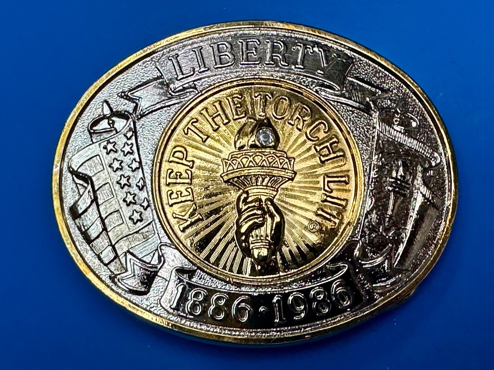как выглядит Keep The Torch Lit - Patriotic America Statue Of Liberty 100 Year Belt Buckle фото