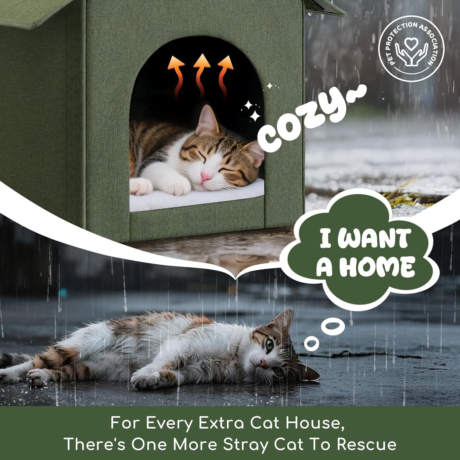 Insulated Weatherproof Cat House for Outdoor and Indoor Use, Pet Shelter