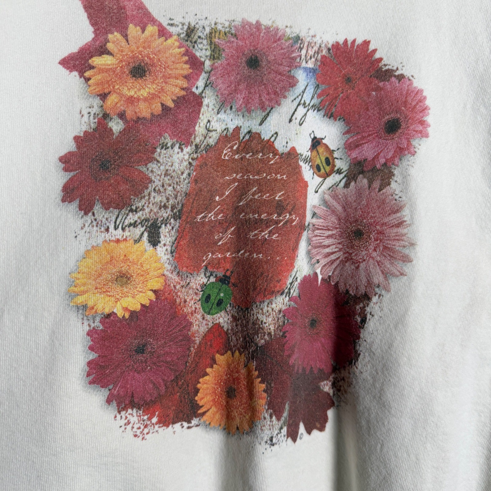 Vintage Maze Floral Garden Ladybug Sweatshirt Cream Womens Large Made in USA 90s
