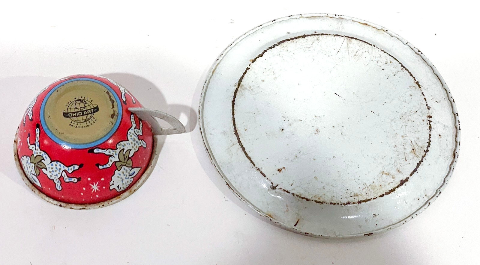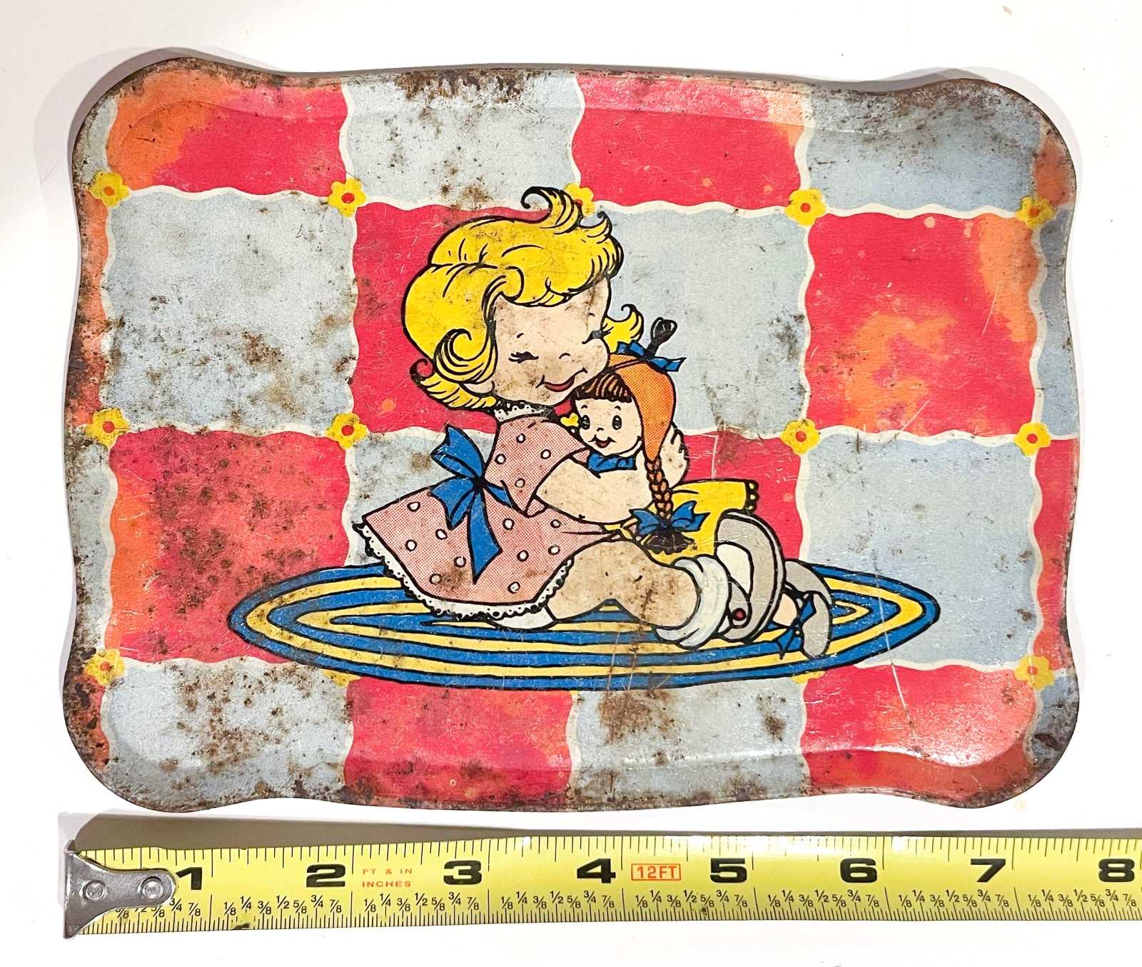 как выглядит Vintage 1950s OHIO ART Tin Litho TEA SET TRAY Girl Doll LITTLE BO PEEP MCM фото