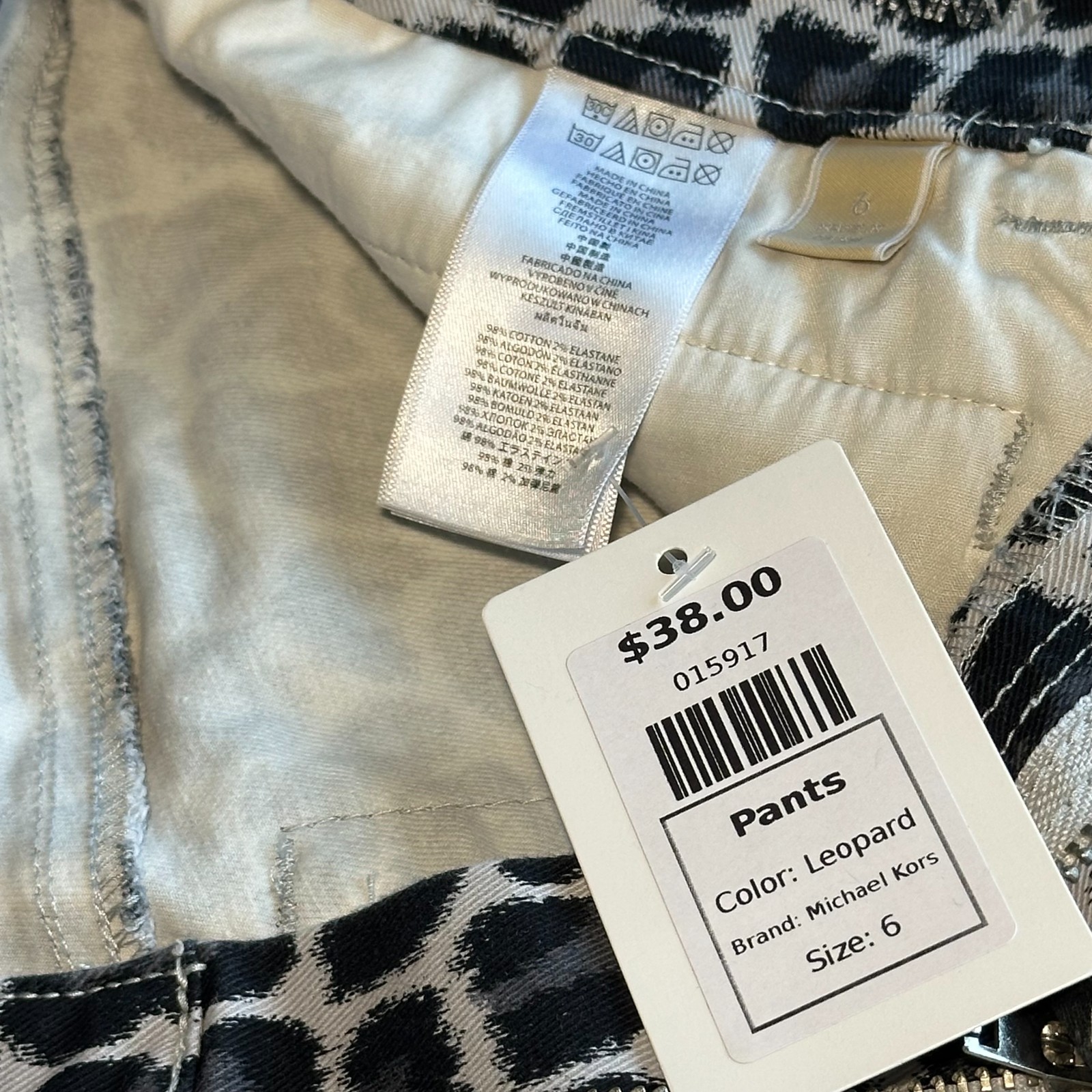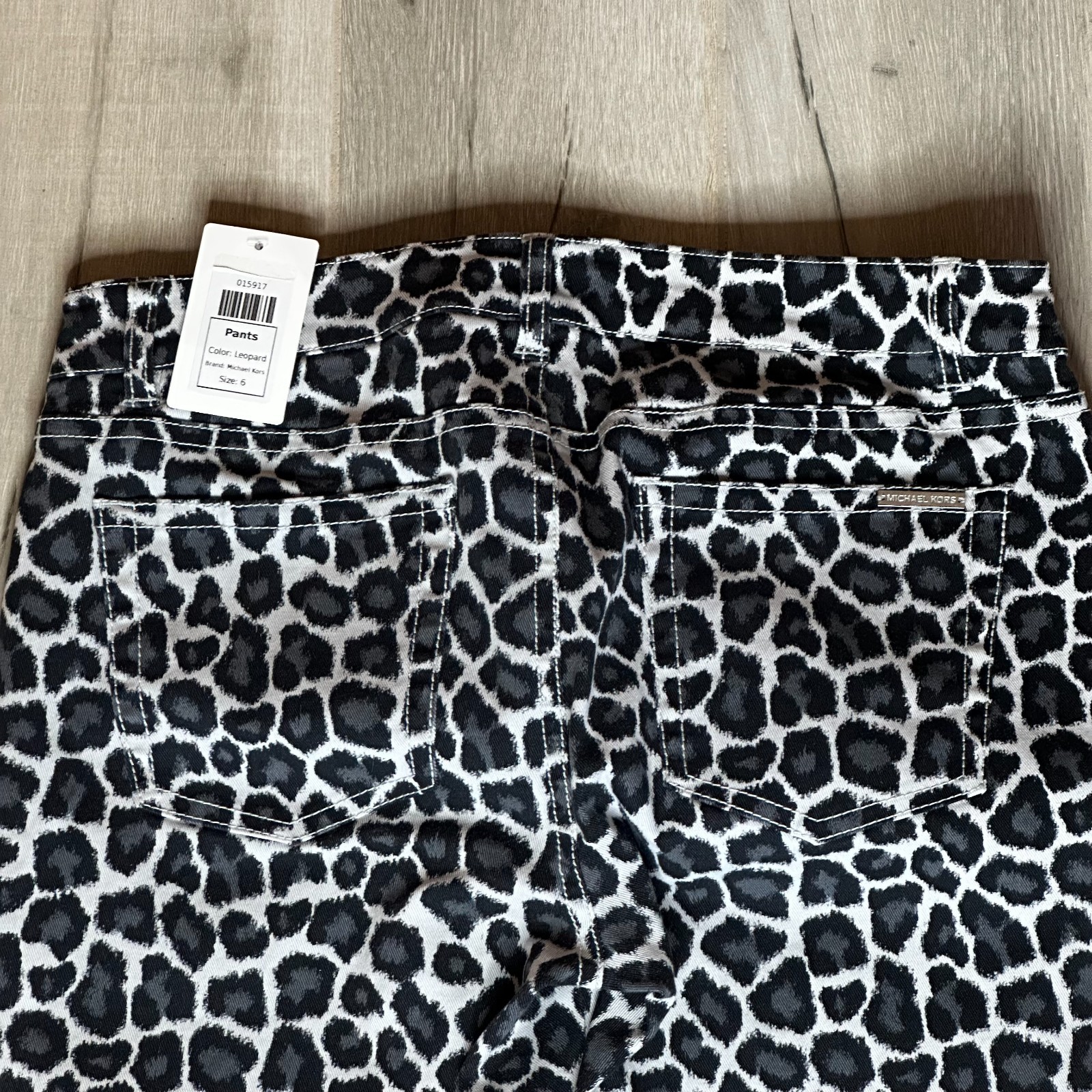 как выглядит Michael Kors Black Gray White Leopard Jeans Sz 6 Stretch Statement Pants NWT фото