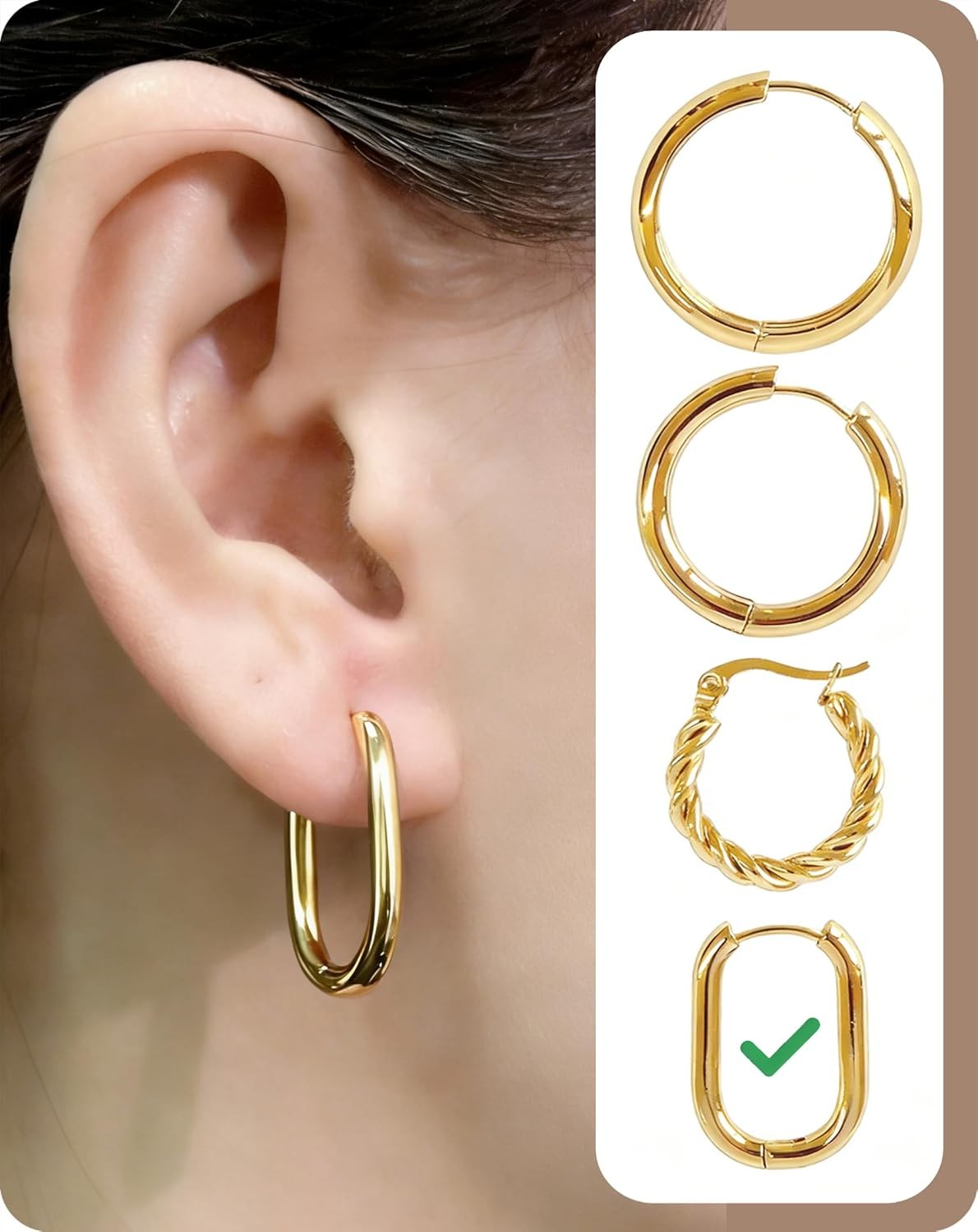 4 Pairs Gold Hoop Earrings for Women - 14K Gold Plated 316 Stainless Steel, Hypo