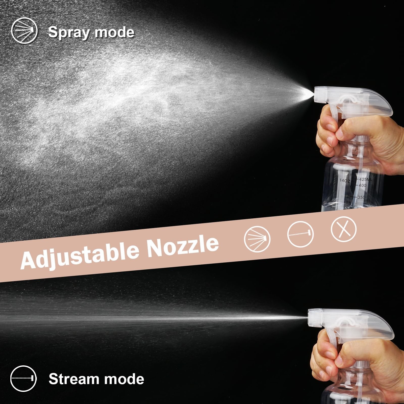2Pack 16.9oz Refillable Spray Bottles Clear Trigger Sprayers, MultiPurpose