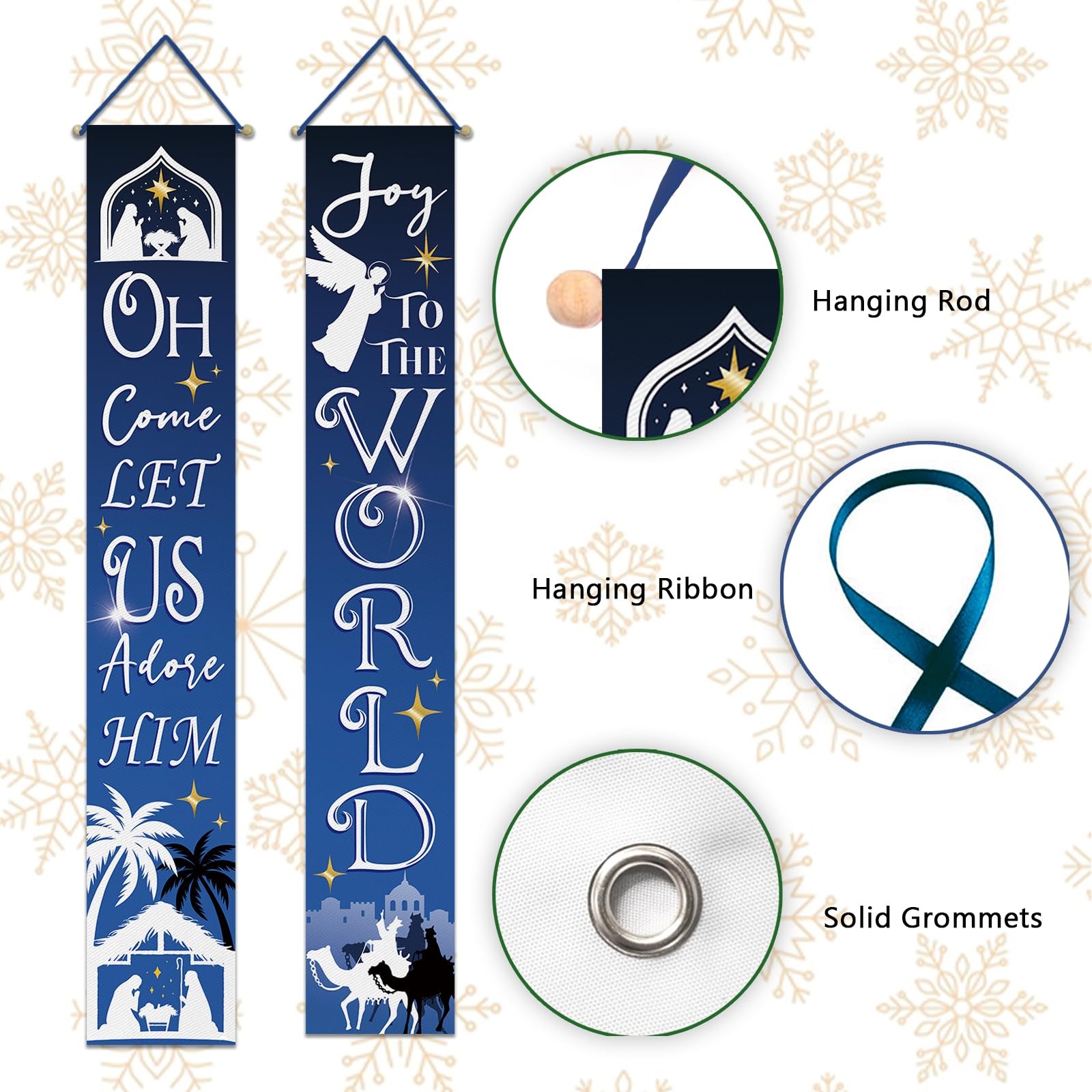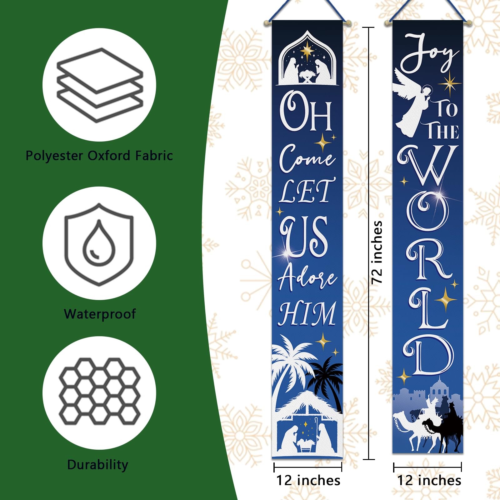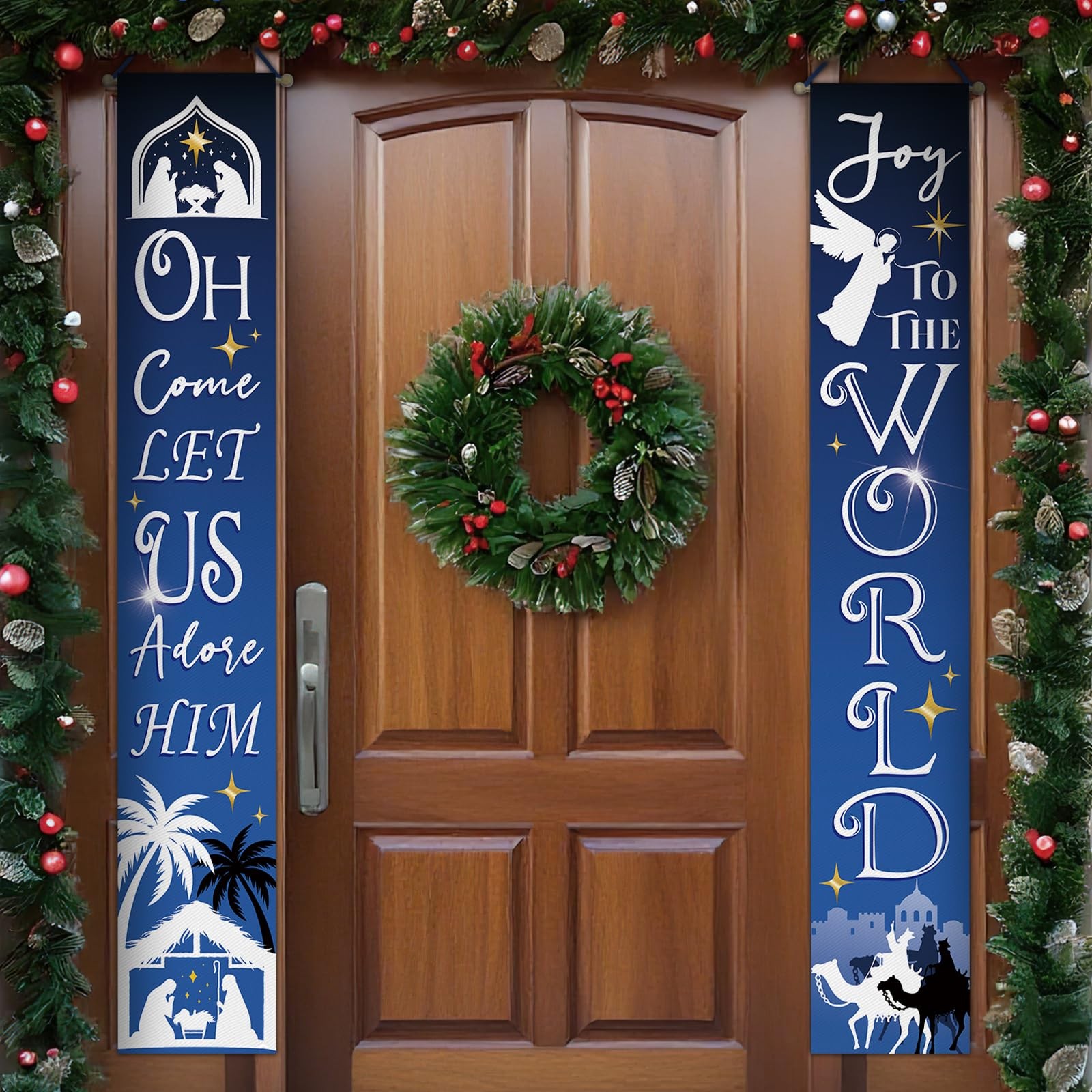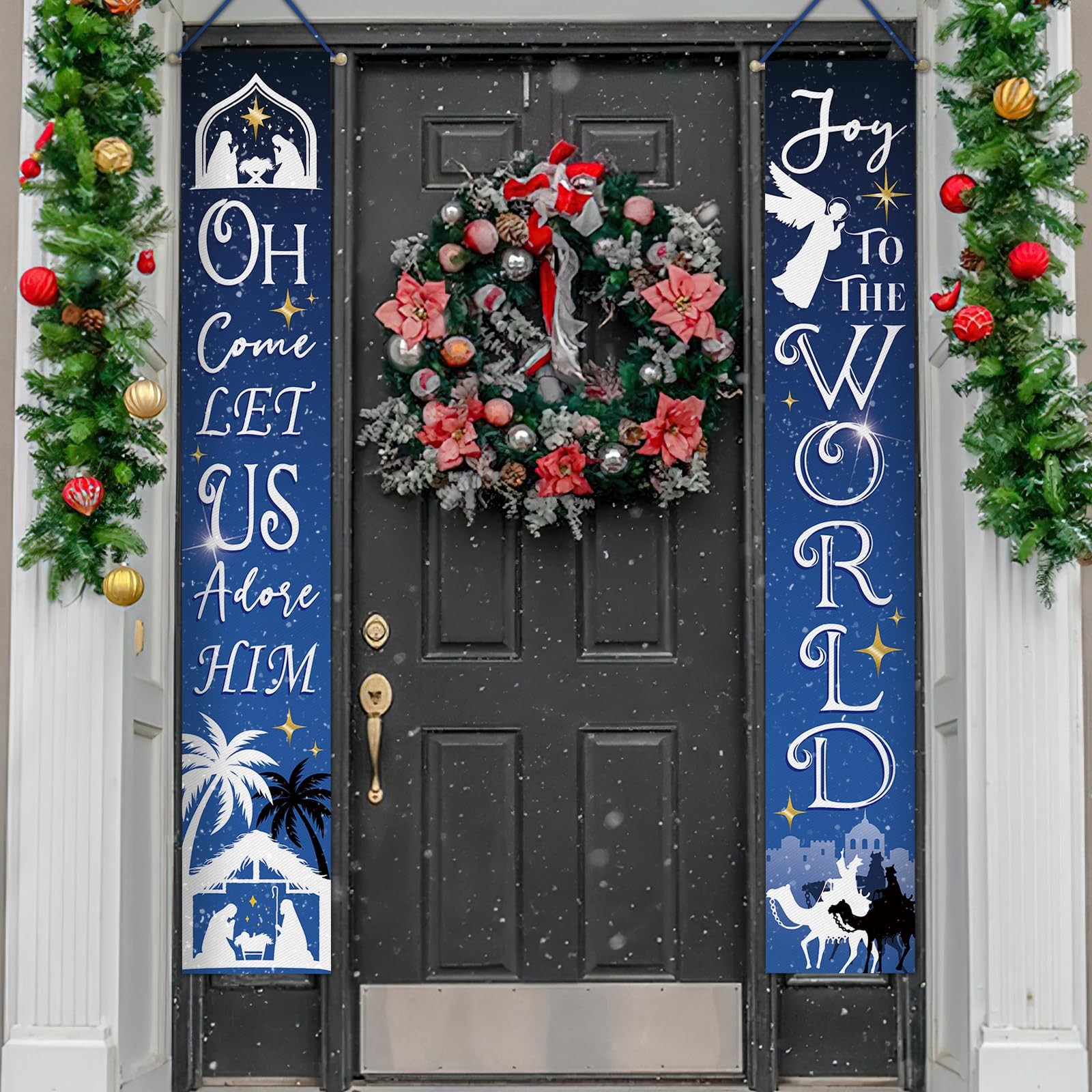 Christmas Nativity Christian Porch Banner Sign, Religious Xmas Joy To The Wor...