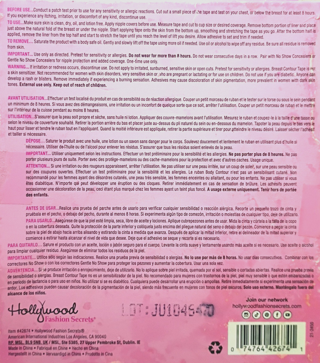 Hollywood Fashion Secret Breast Contour Tape For Light SkinTones Size A-DDD 3pr