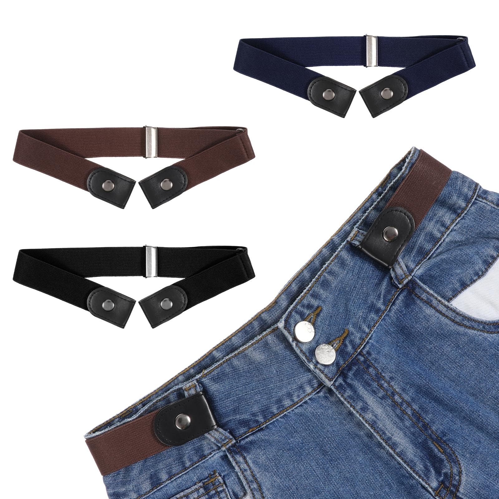 3 PCS No Buckle Stretch Belts for Toddler, Kids Elastic No Buckle Belt for ki...