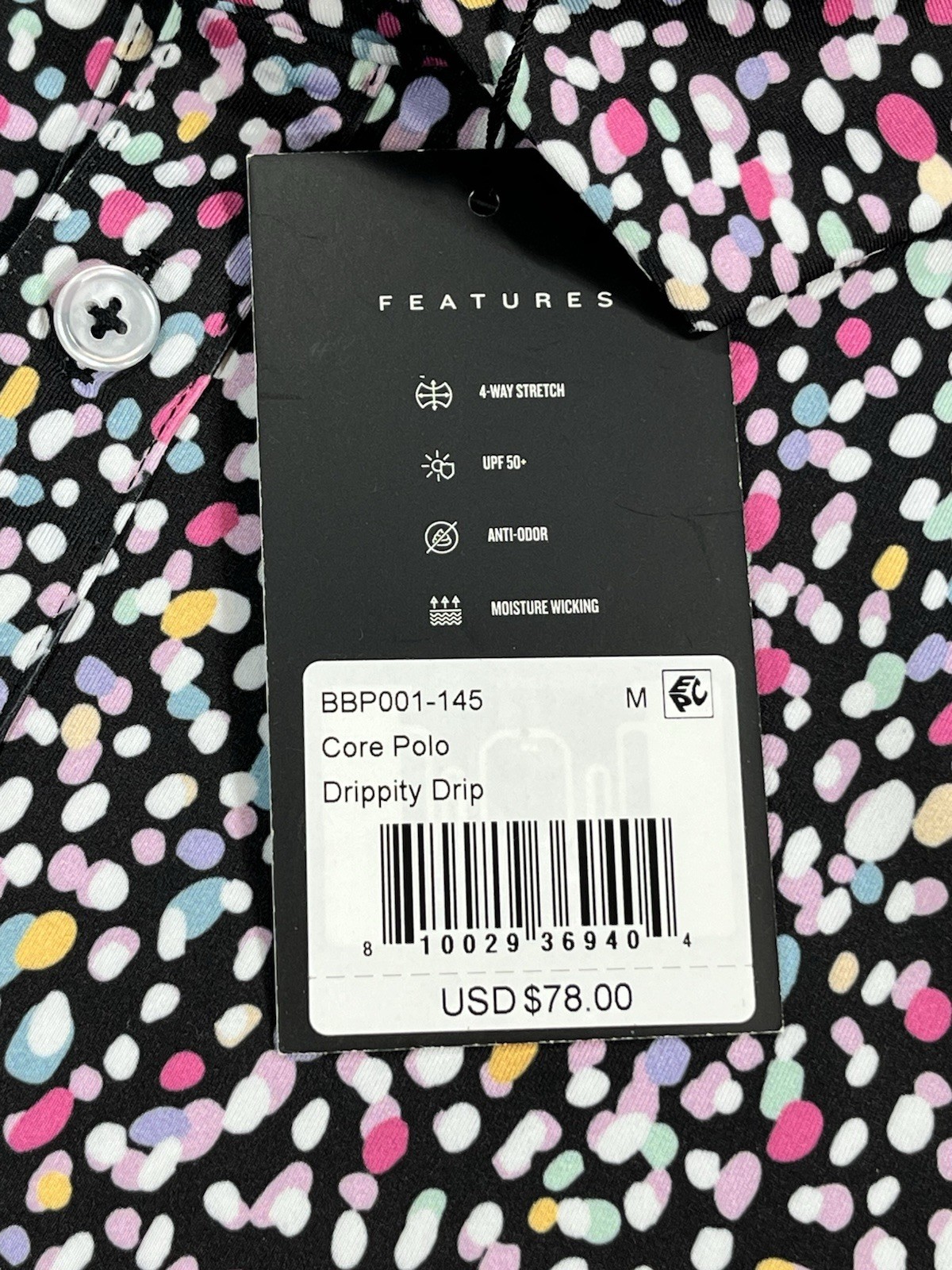 как выглядит Bad Birdie Mens Med Golf Polo Drippity Drip Multicolor Short Sleeve Shirt NWT фото