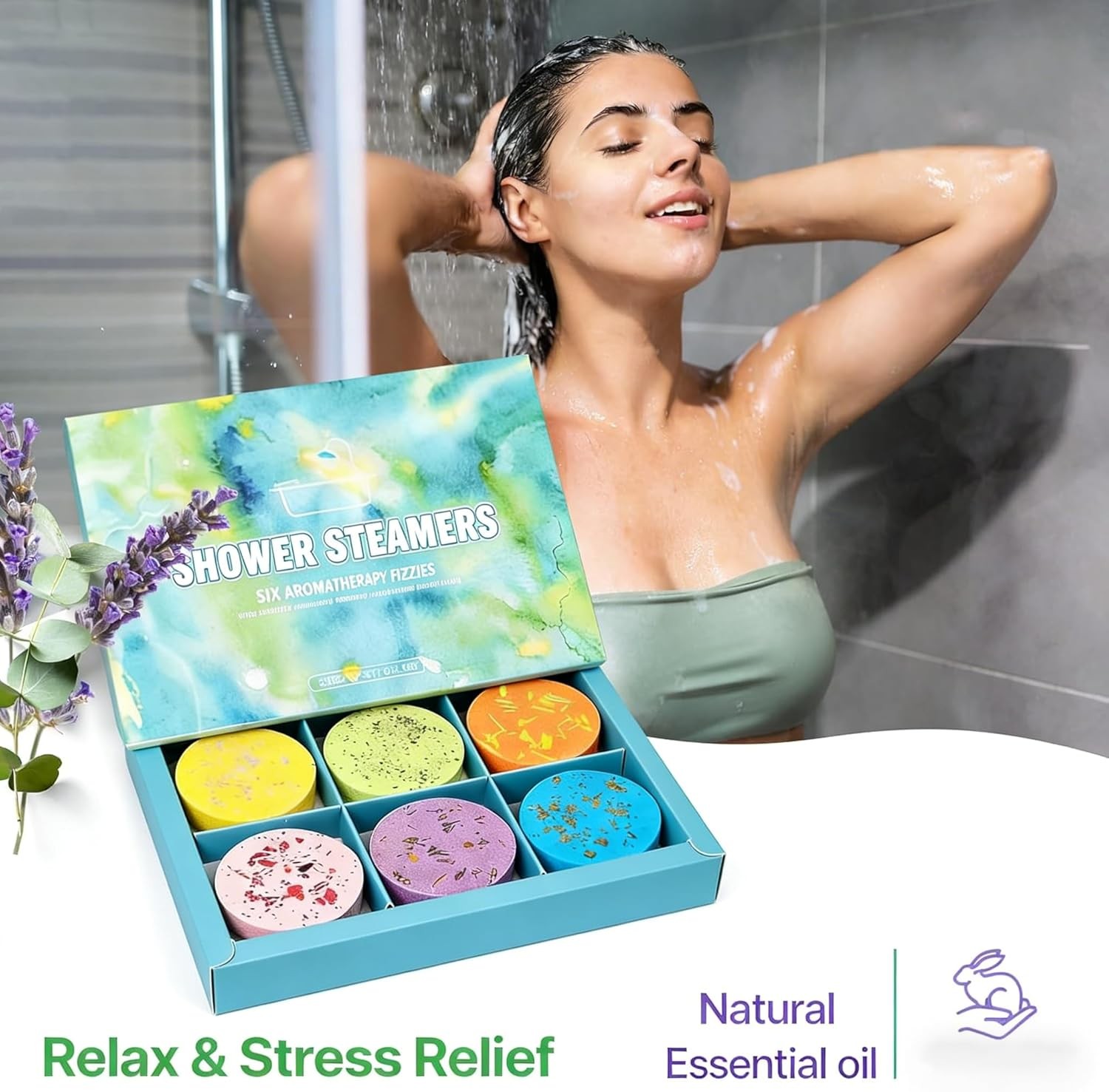 Aromatherapy Shower Steamers Gift Set - 6 Scented Tablets for Relaxation