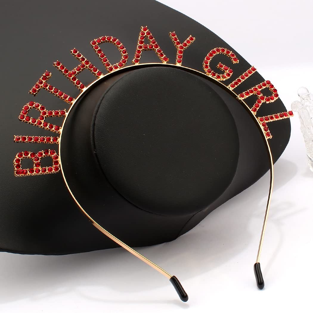 Birthday Girl Princess Tiara Crown Headband Gold Red Rhinestone Adjustable