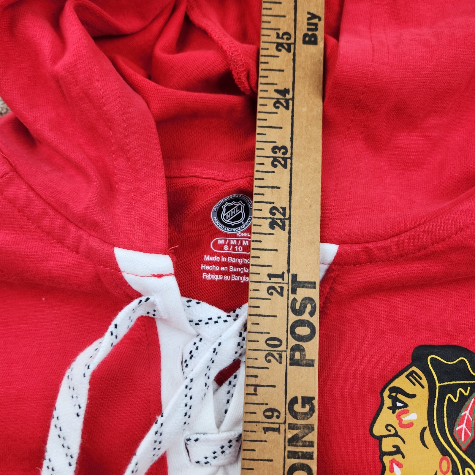 • NHL Chicago Blackhawks Hooded T Shirt Red Logo Licensed Sz Youth Medium M 8/10