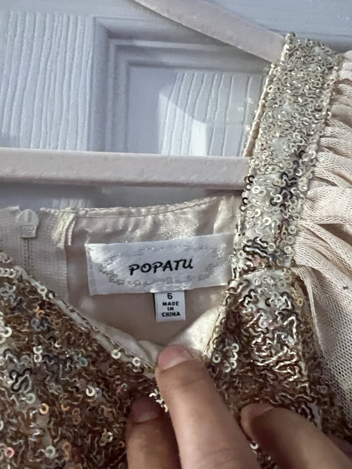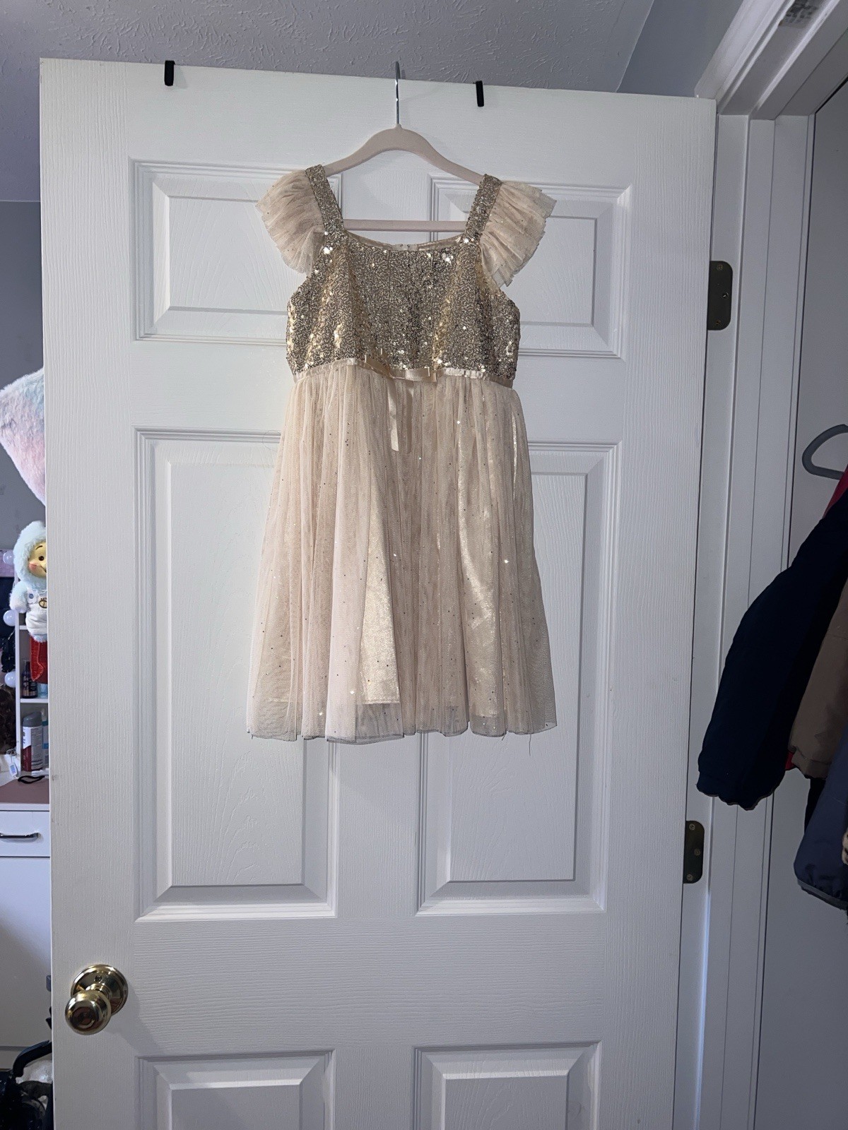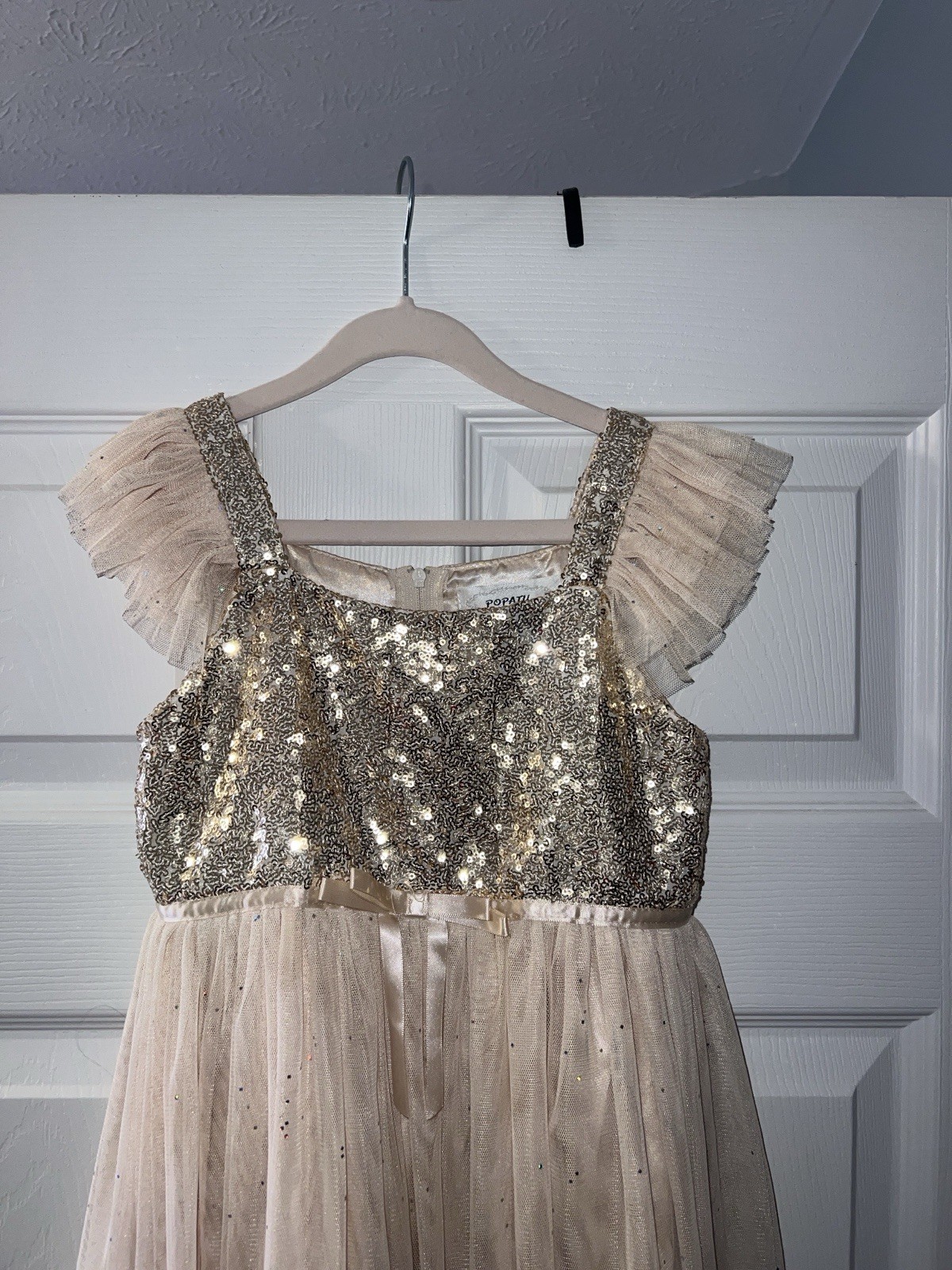 Popatu Girls Gold Ivory Sequin Formal Flower Girl Tulle Polyester Dress Size 6