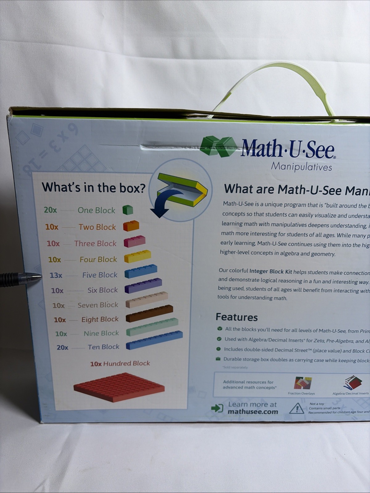 как выглядит Math U See Integer Block Kit Missing 3 Blue Block And 1 Green Block фото