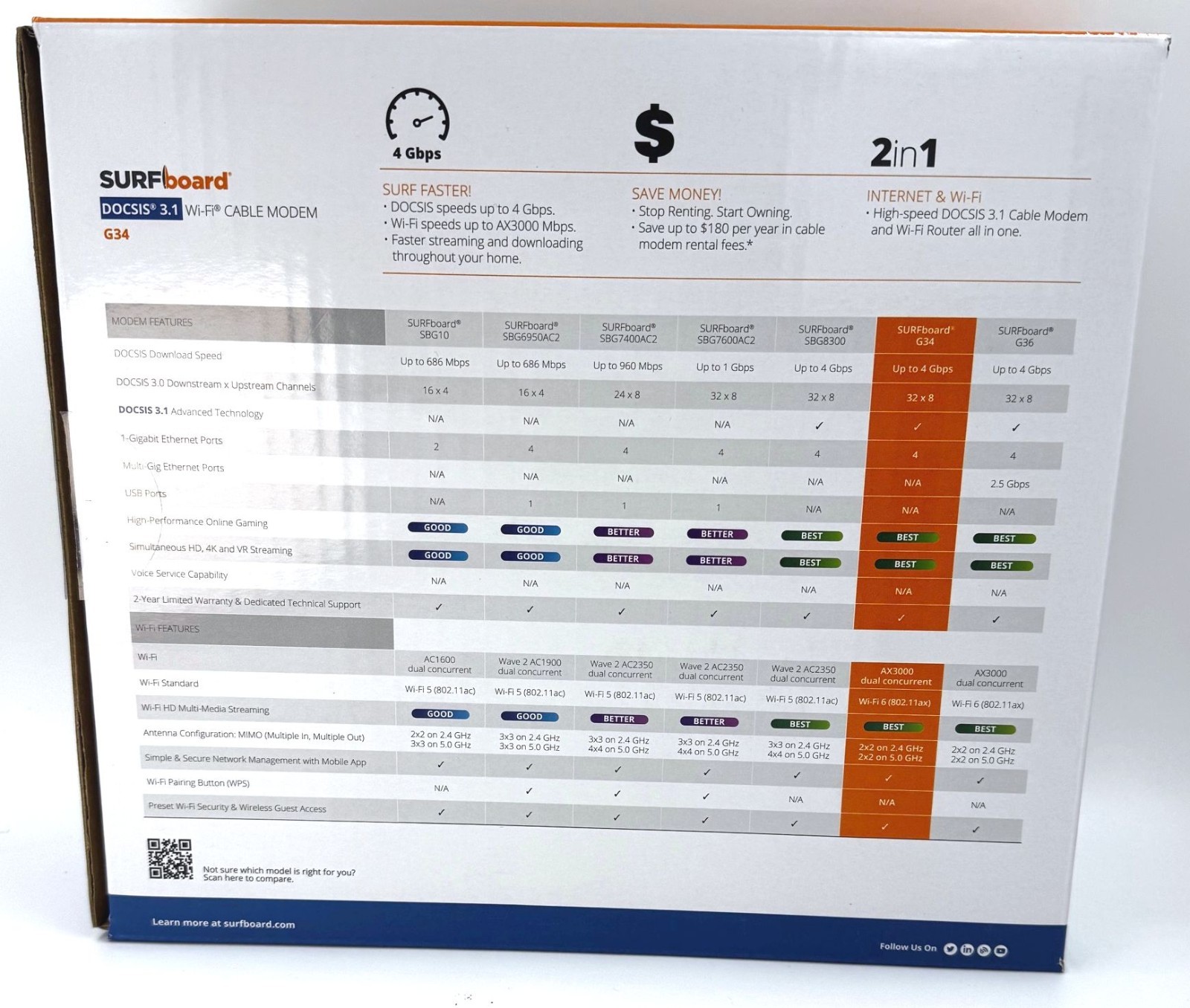 ARRIS G34 Cable Modem Router Combo Fast DOCSIS 3.1 Gigabit WiFi 6 AX3000