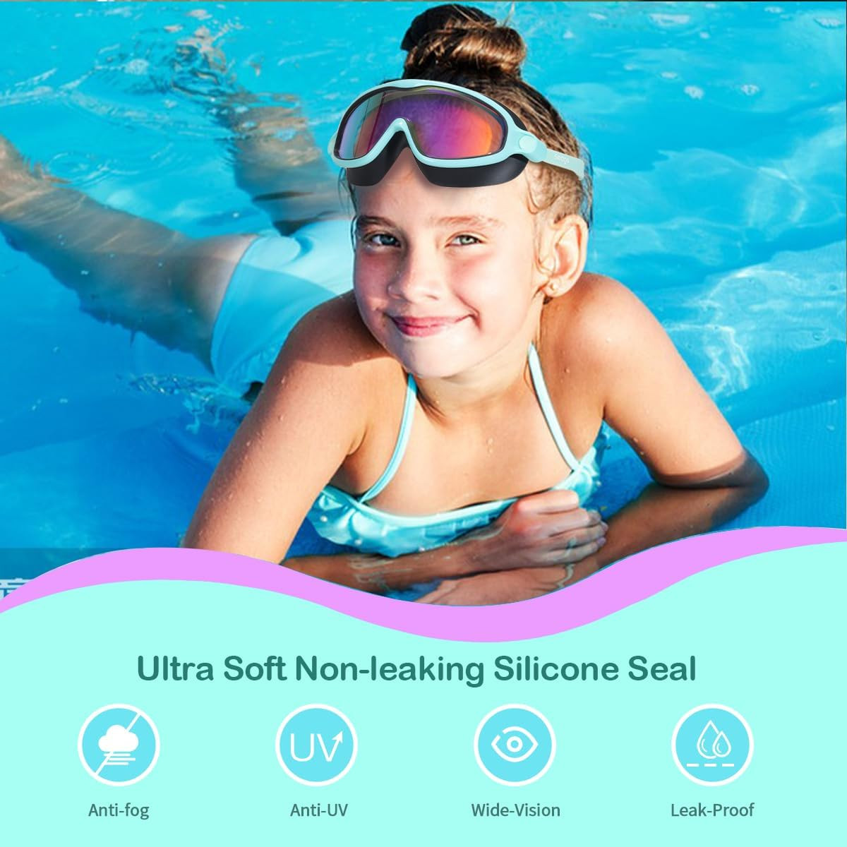 как выглядит Swim Goggles 2 Pack Anti-Fog Anti-Uv Wide View Swimming Goggles for Kids 3-14 фото