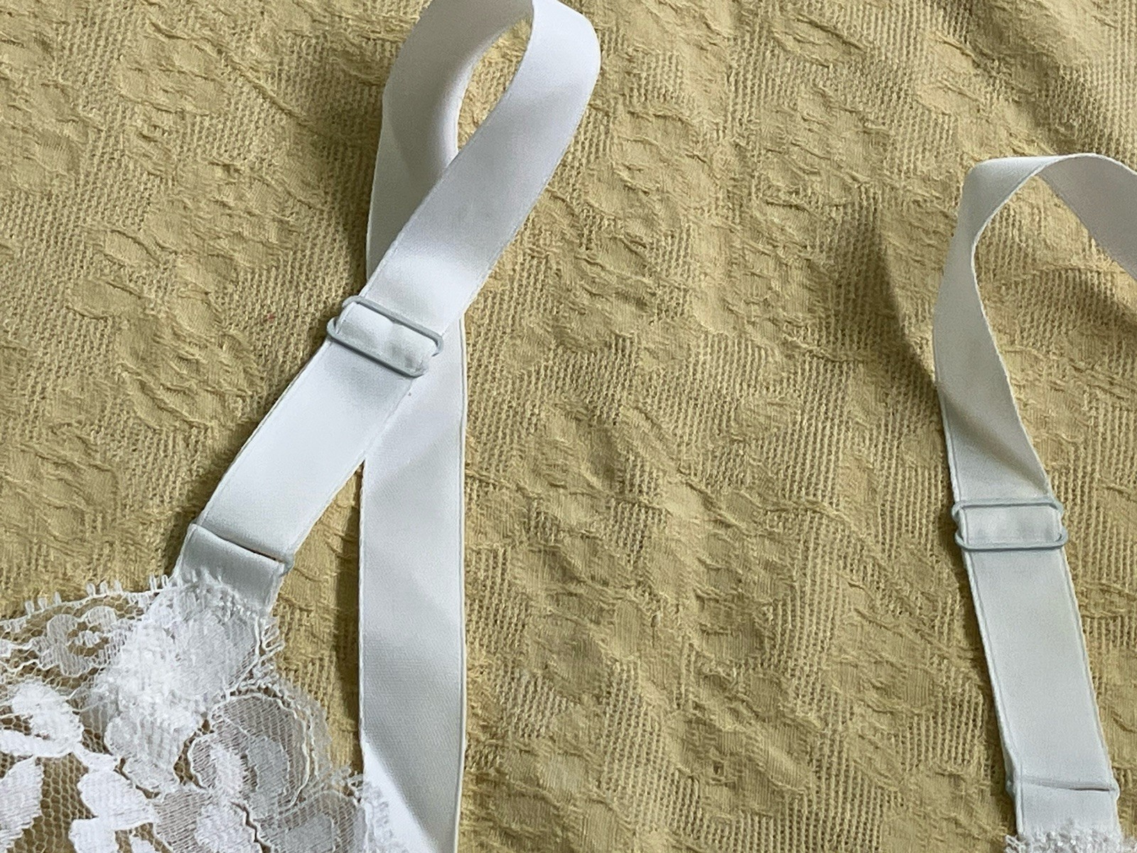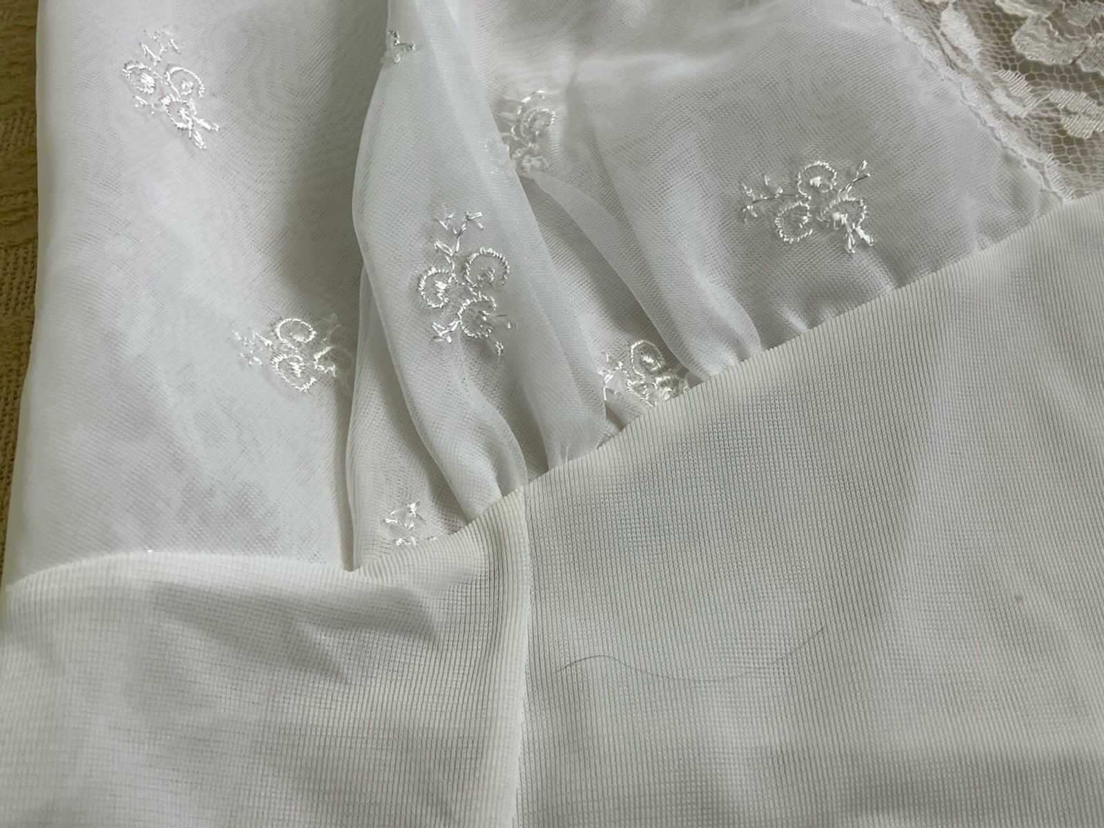 VTG Full Slip White LACE ACCENT Womens Sz 36 Average Length Union Made USA Nylon