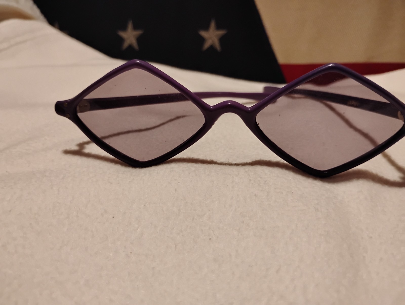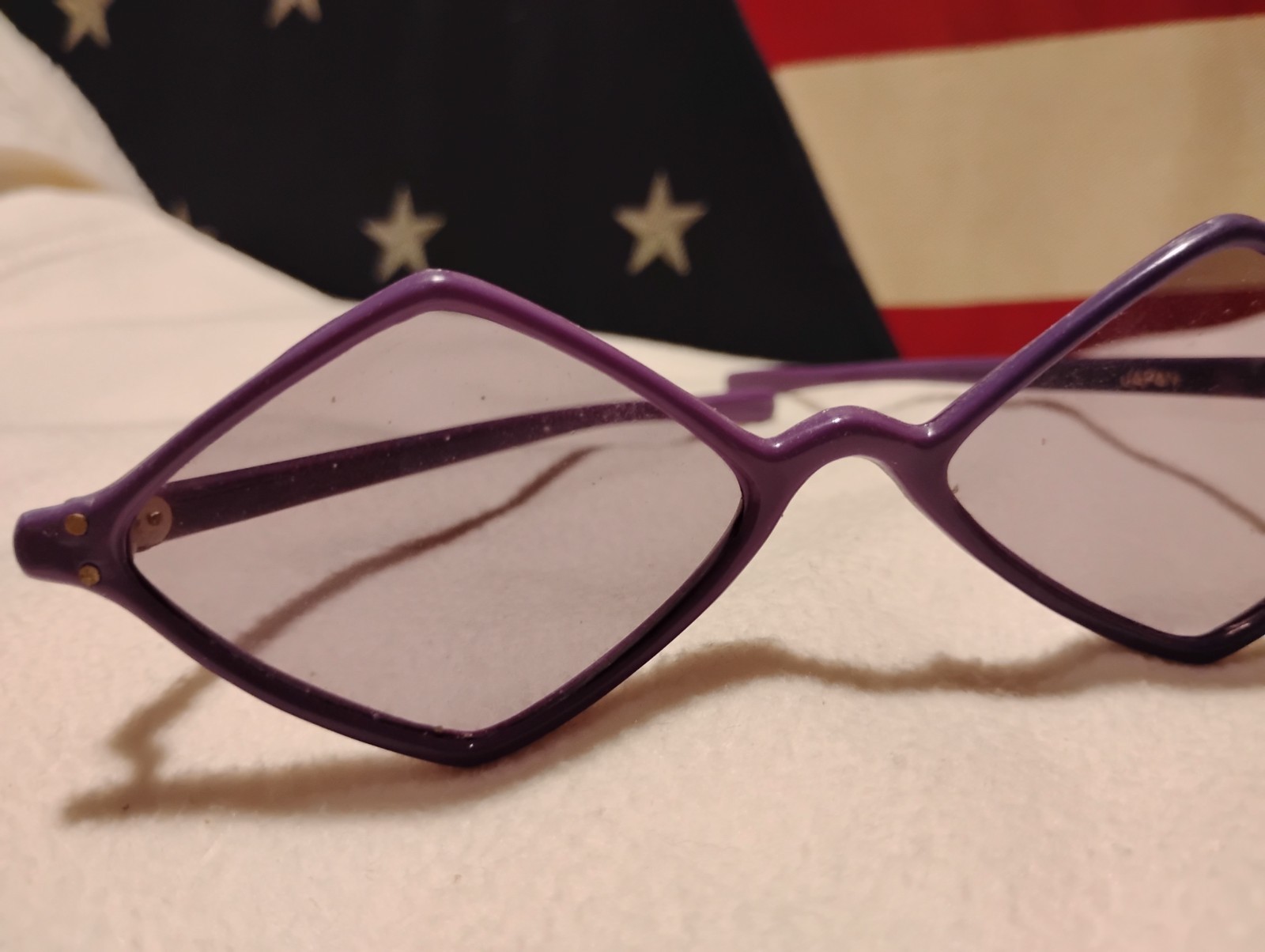как выглядит VINTAGE PLASTIC DIAMOND PURPLE FRAMES LENSES SUNGLASSES RARE 1960s ROCK SHADES фото