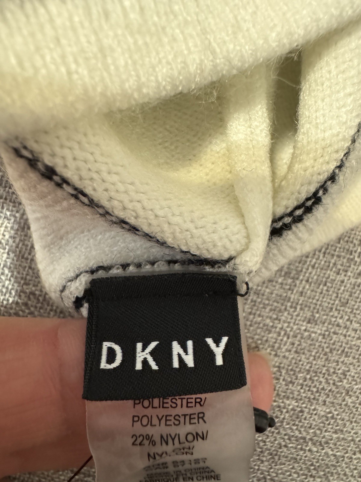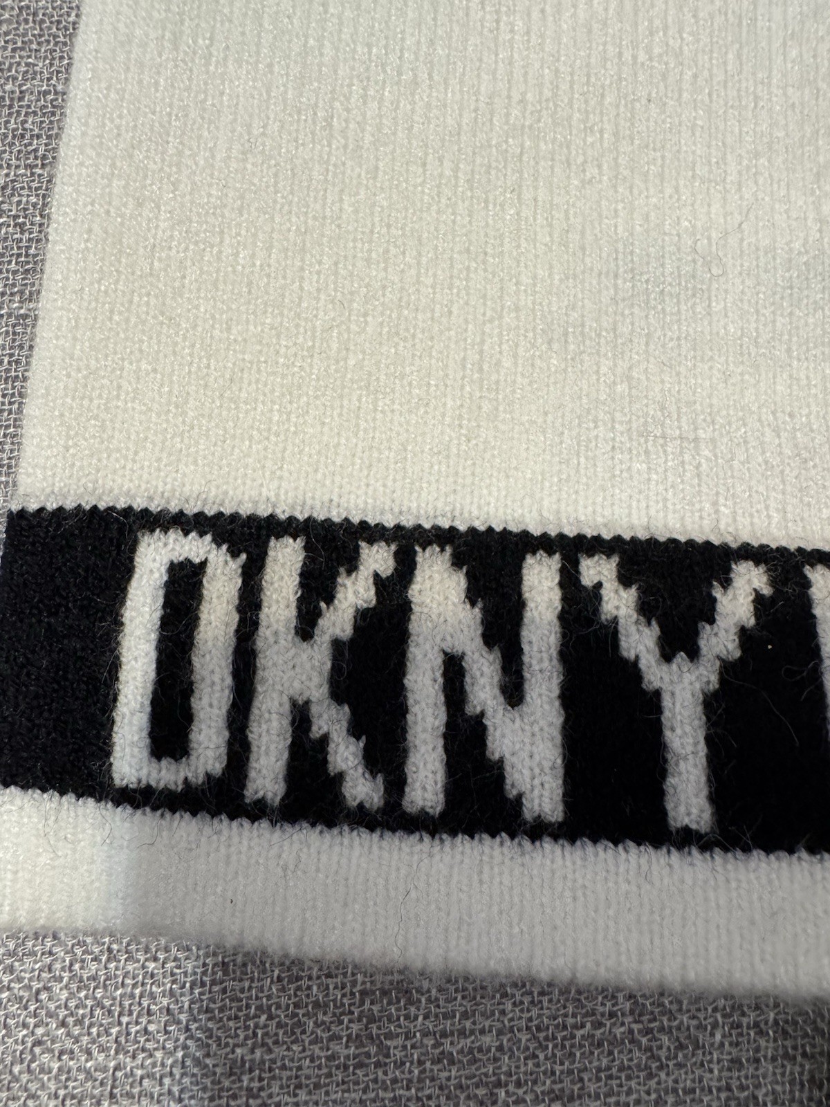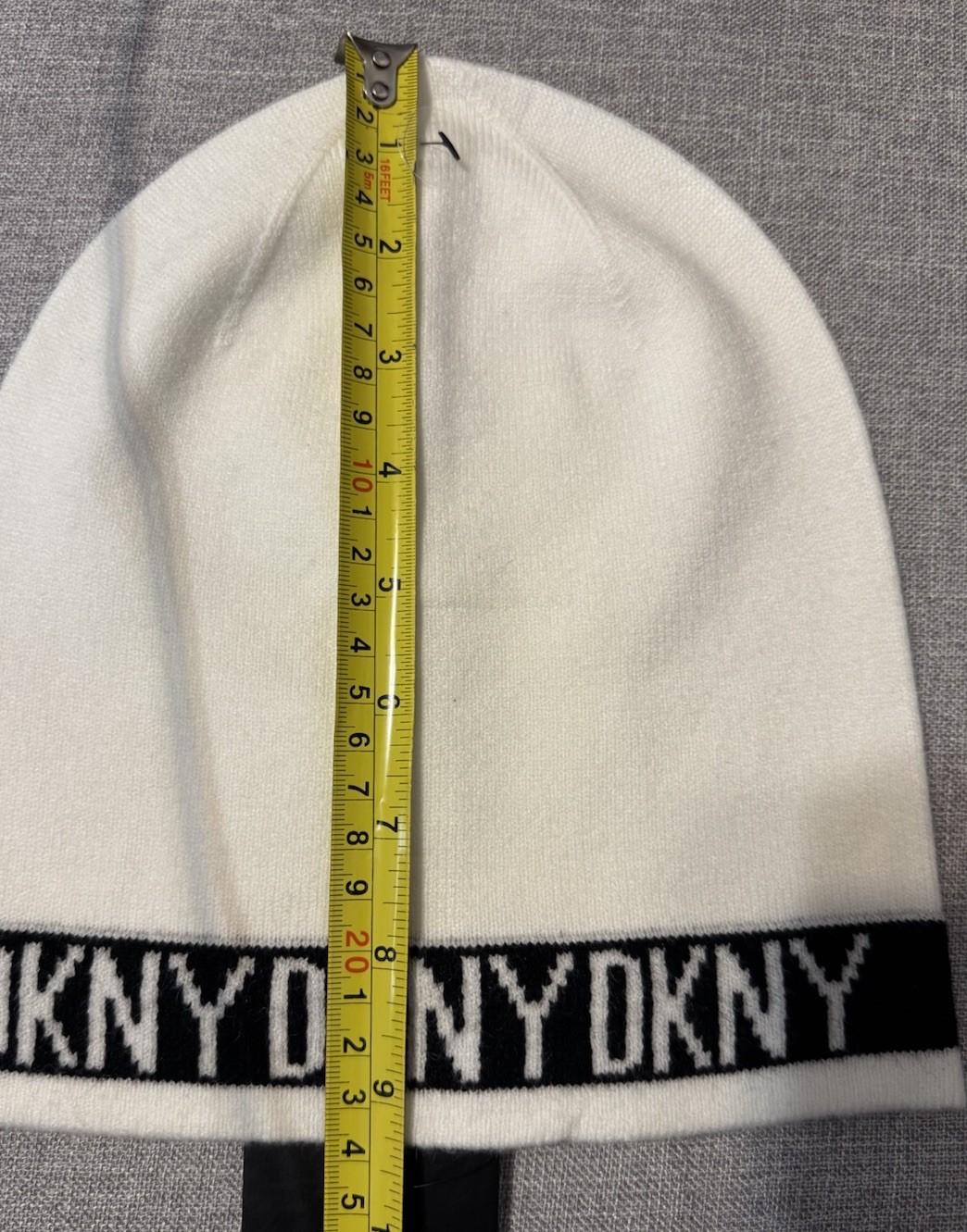 как выглядит New DKNY Ivory Black Logo Knit Beanie Hat One Size Unisex Men Women фото