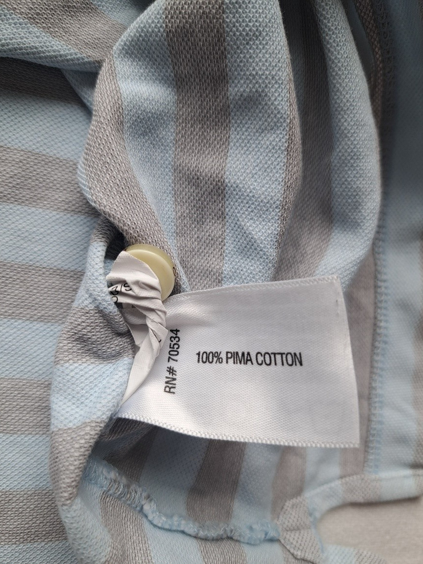 как выглядит Orvis Mens Striped Polo Shirt Gray/Light Blue 100 Pima Cotton Size XXL фото