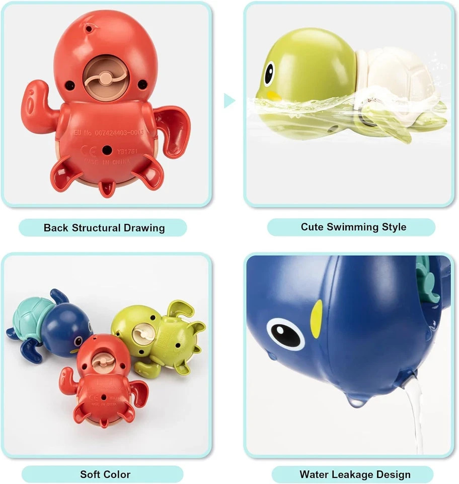 как выглядит Bath Toys, 3 Pack Cute Swimming Turtle Bath Toy for Toddlers 1-3, New Born Baby фото