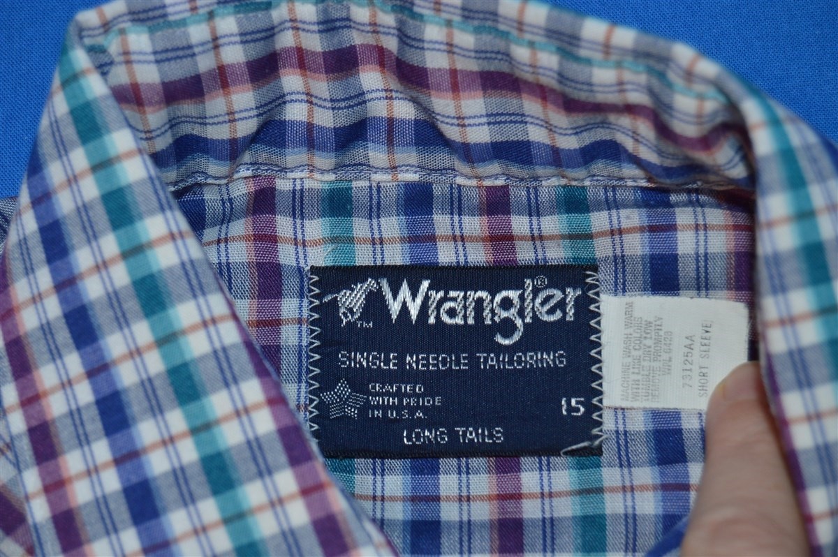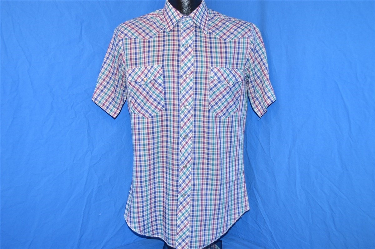 как выглядит vintage 90s WRANGLER RAINBOW PLAID WESTERN PEARL SNAP COWBOY SHIRT SS 15 MED M фото