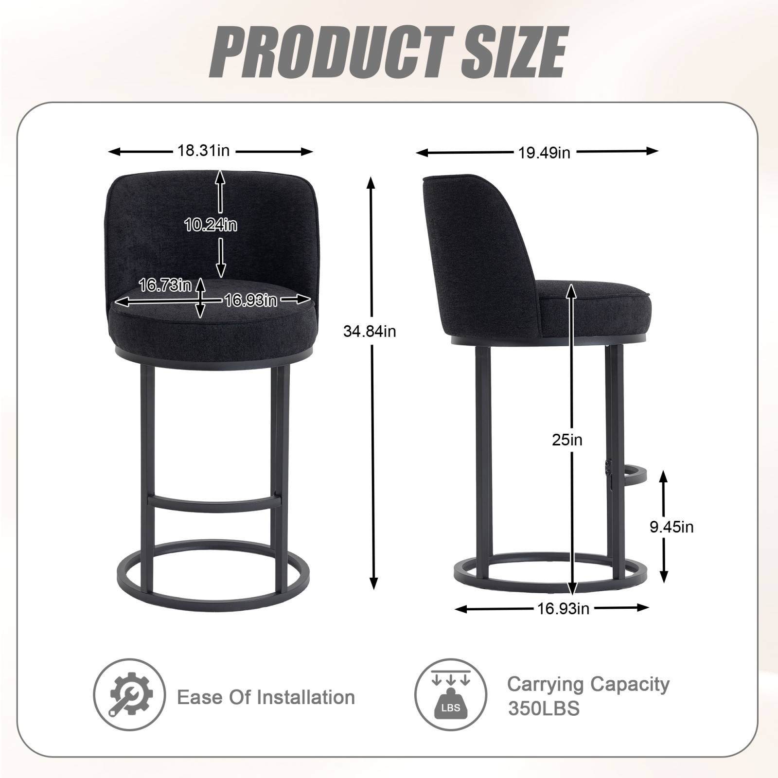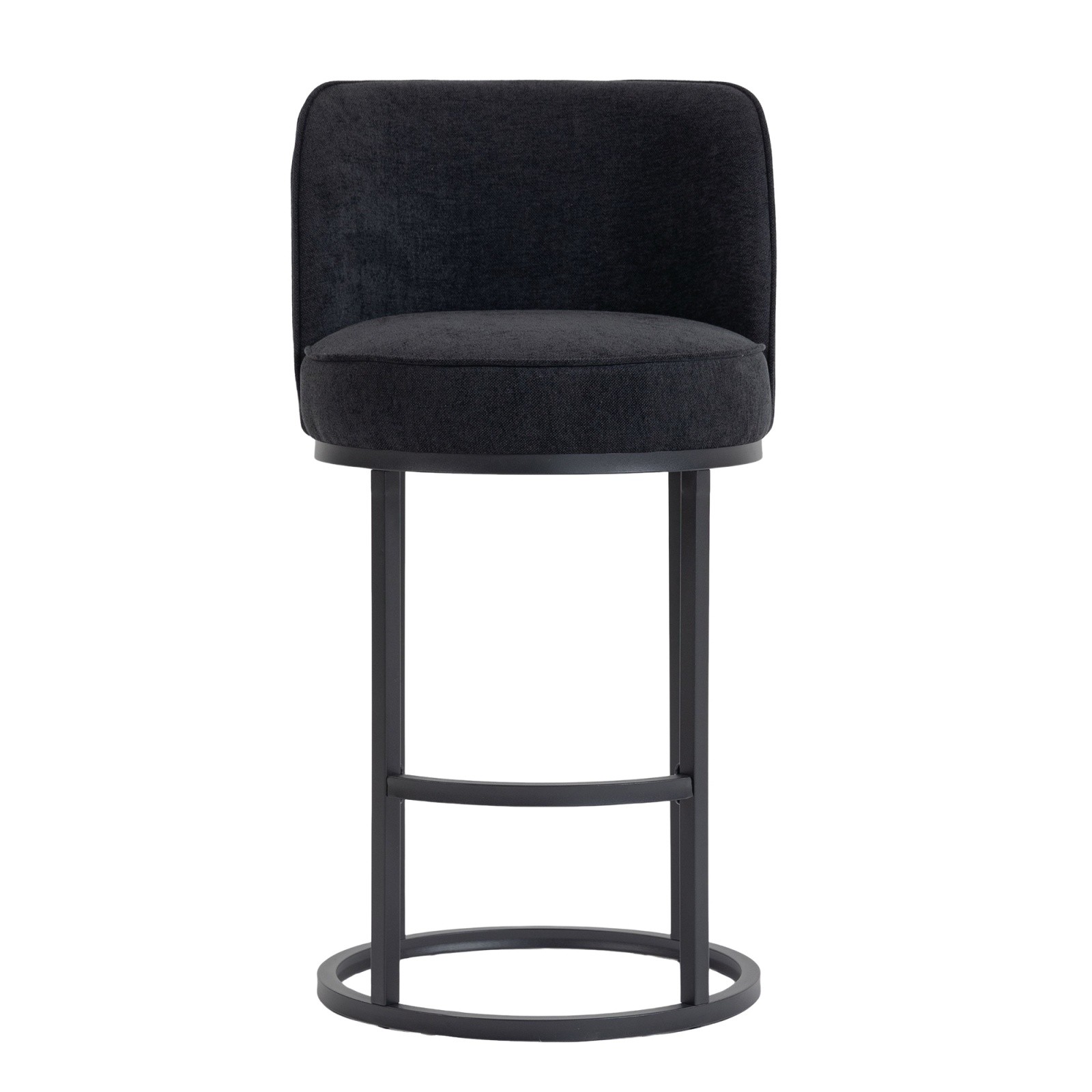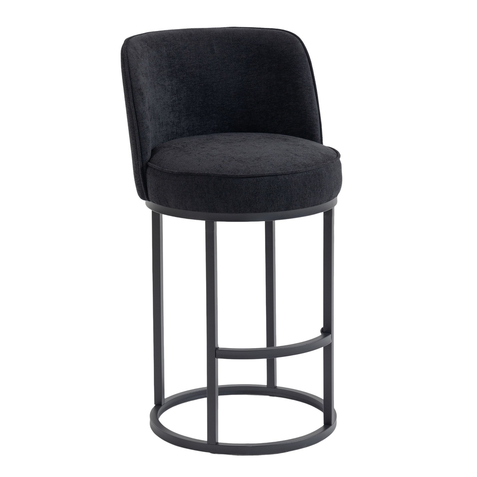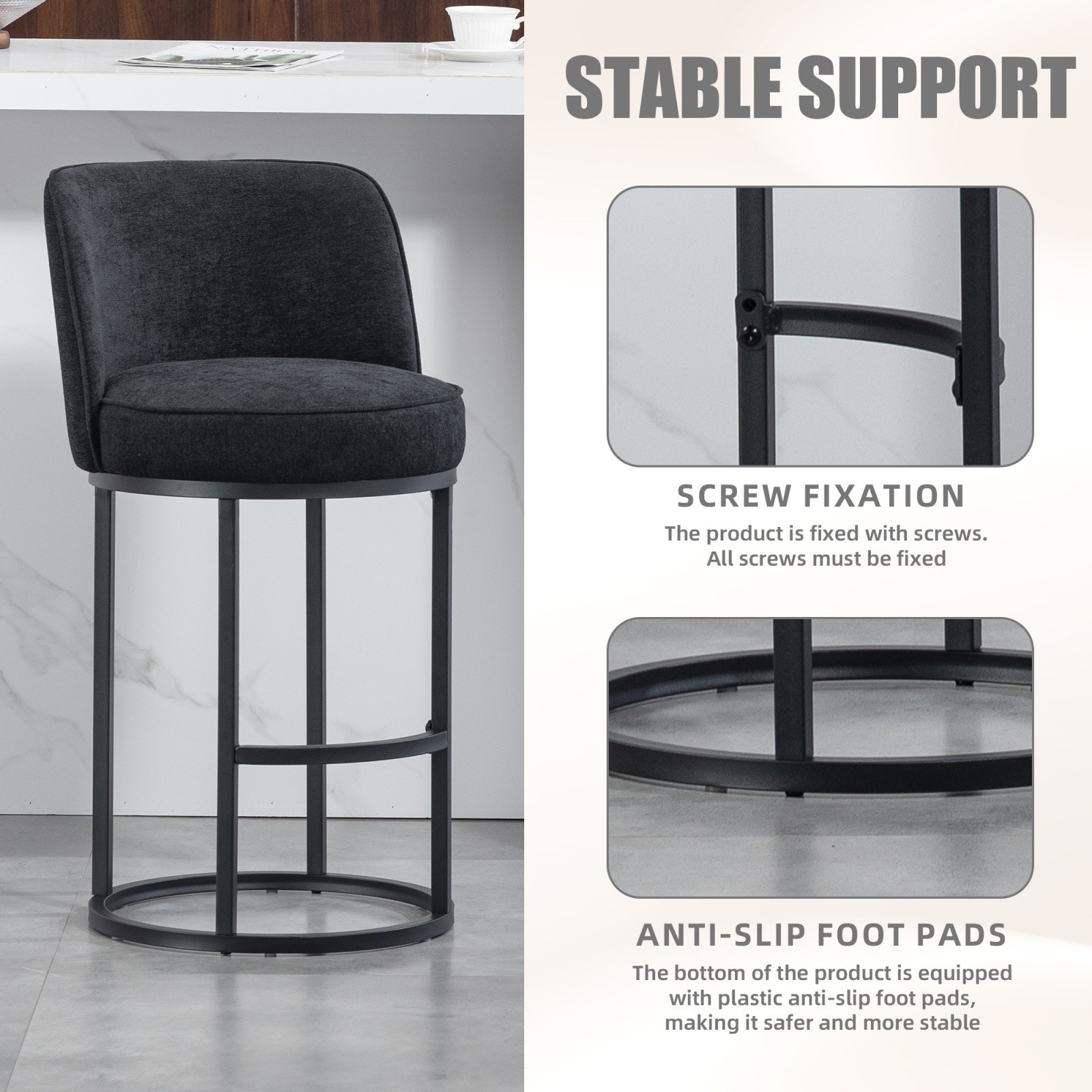 как выглядит Black Counter Height Bar Stools Set of 2 Counter Stools Linen Fabric Upholstered фото
