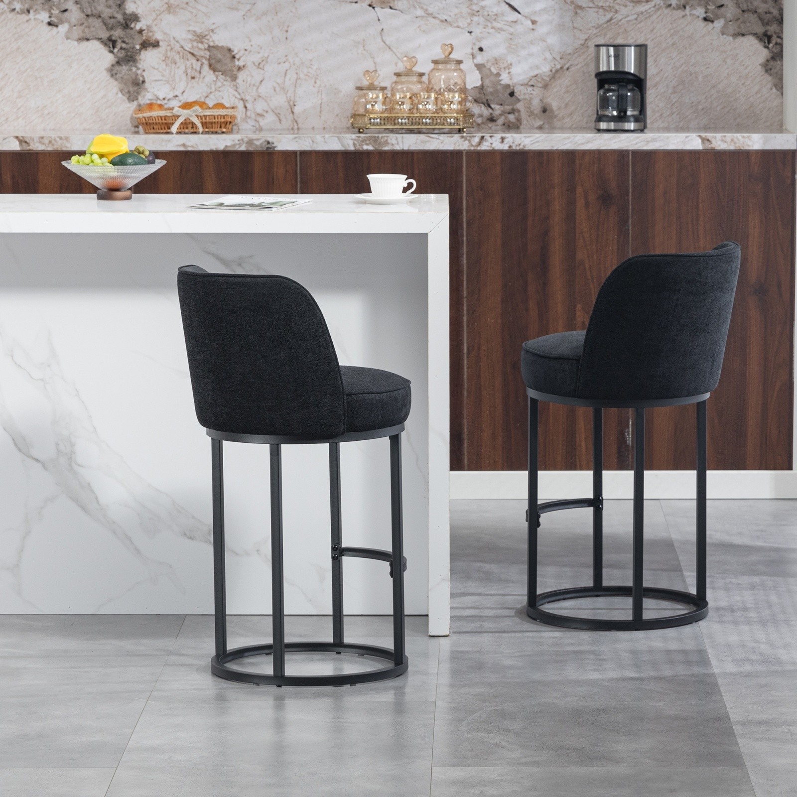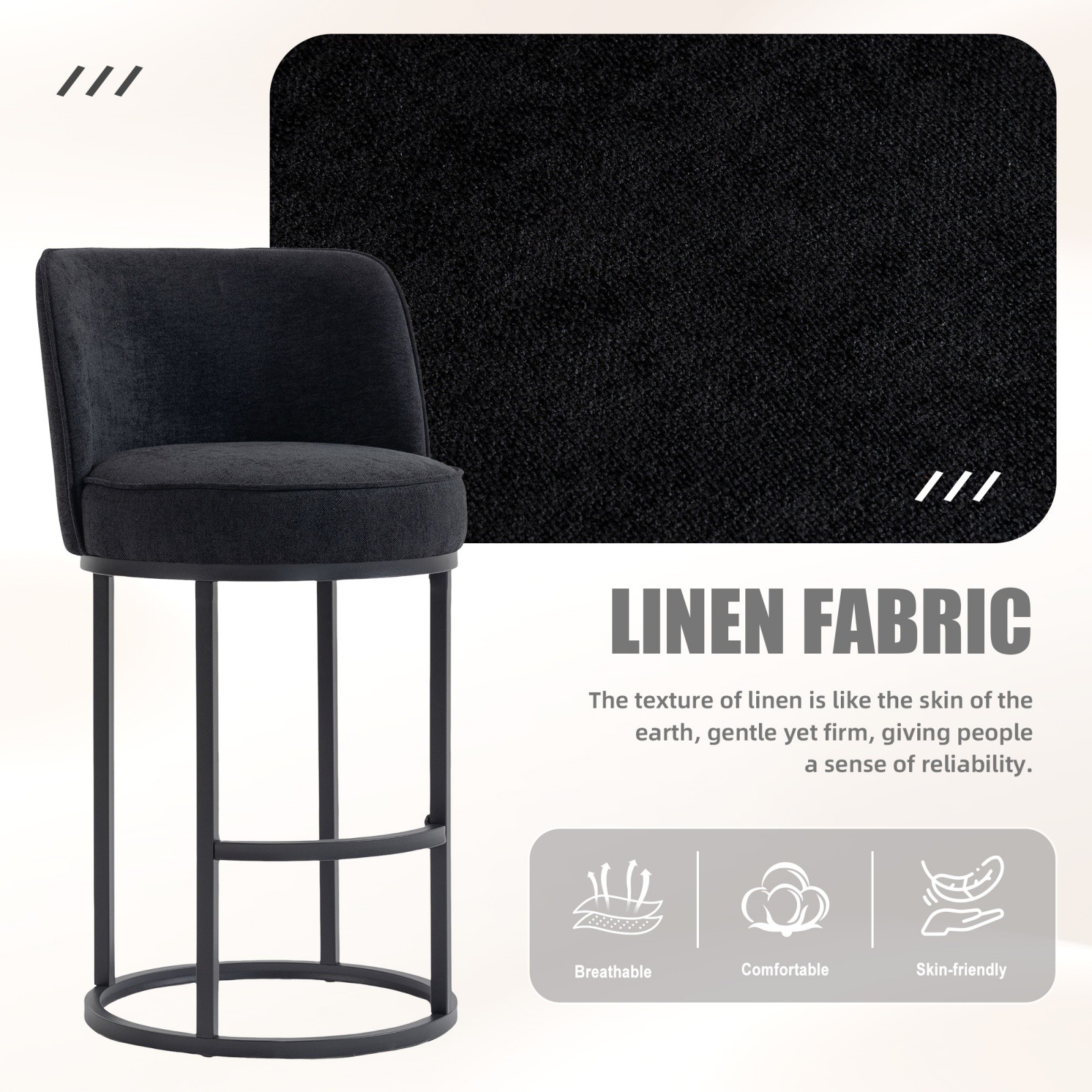 Black Counter Height Bar Stools Set of 2 Counter Stools Linen Fabric Upholstered