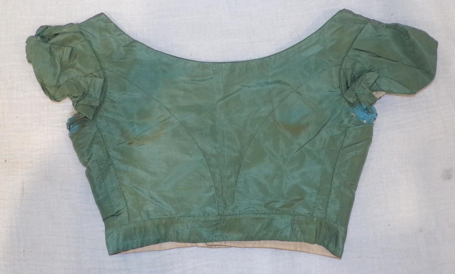 ANTIQUE ARSENIC SCHEELE'S GREEN SILK CIVIL WAR VICTORIAN BALL GOWN DRESS BODICE