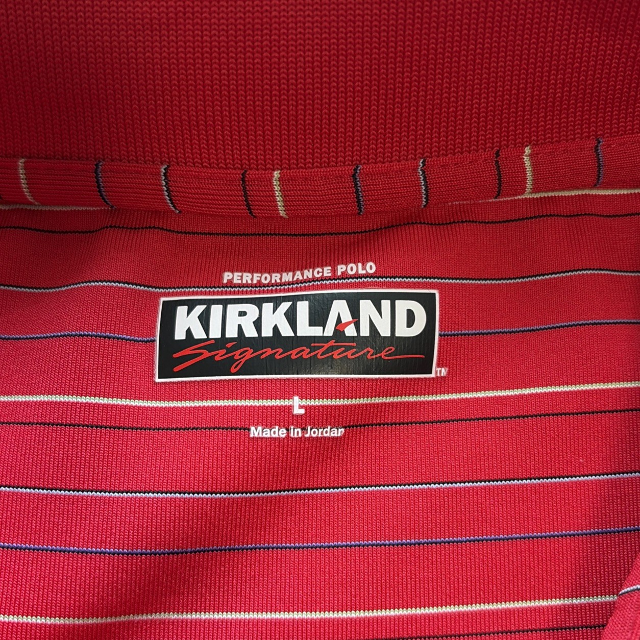 как выглядит 2 Kirkland Signature Performance Polo Mens L Striped Short Sleeve Golf Shirts фото