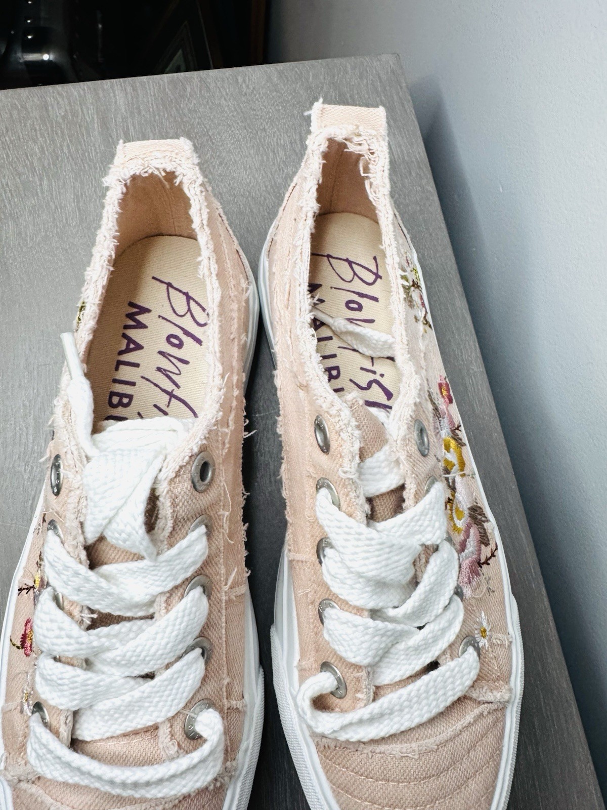 как выглядит NWT Blowfish Malibu Sadie-Sun Sneakers Size 8 Dusty Rose Pink Floral Embroidery фото