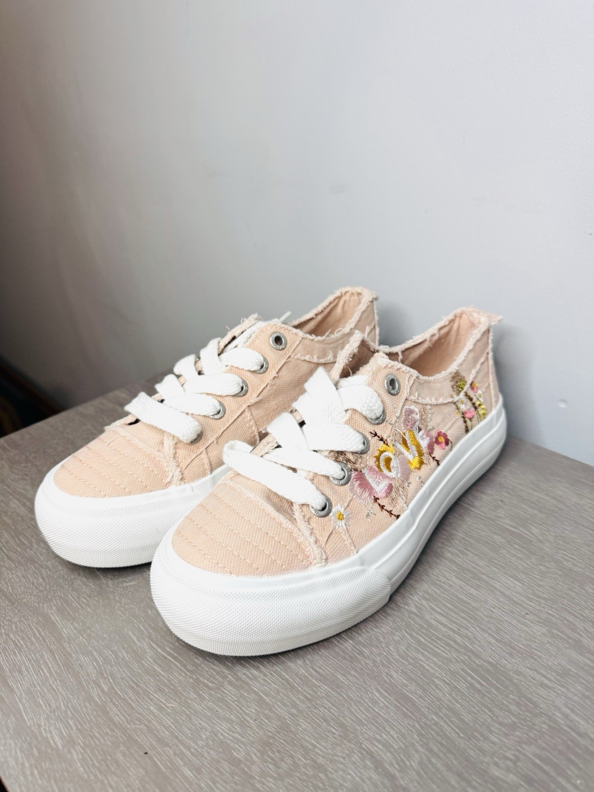 NWT Blowfish Malibu Sadie-Sun Sneakers Size 8 Dusty Rose Pink Floral Embroidery